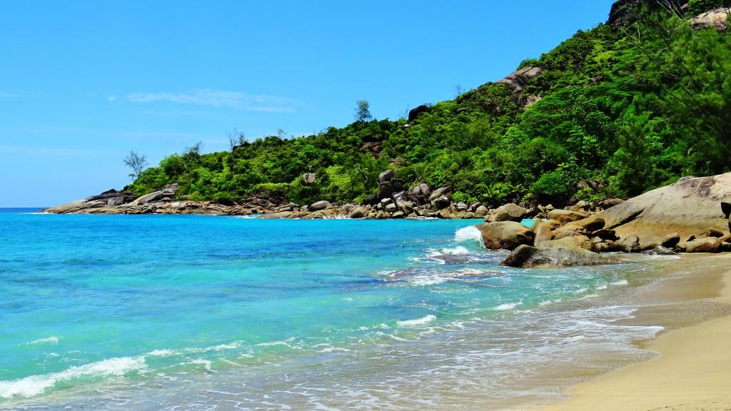 Die Wanderung zur Anse Major ist zugleich eines der Highlights – sie führt durch tropischen Wald und belohnt mit atemberaubenden Ausblicken. Am Strand selbst genießt man völlige Ruhe und Natur pur, fernab von Menschenmassen. Die Anse Major liegt an der Nordwestküste von Mahé, der größten Insel der Seychellen. Der Strand erstreckt sich über etwa 450 Meter und ist umgeben von dichtem tropischem Grün und imposanten Granitfelsen, die die Kulisse prägen. Aufgrund seiner Abgeschiedenheit und der fehlenden Zufahrtsstraße ist der Strand ein ruhiger Rückzugsort fernab des Touristenrummels. Die Anse Major ist nur zu Fuß über einen circa 2,5 Kilometer langen Wanderweg erreichbar, der von der Anse Louis oder der Baie Ternay Reserve startet. Alternativ kann man den Strand auch per Boot ansteuern, was bei ruhiger See möglich ist. Die Wanderung ist mittelschwer und führt durch üppigen Regenwald, vorbei an atemberaubenden Aussichtspunkten, was sie für Wanderfreunde besonders attraktiv macht. Am Strand angekommen, erwartet den Besucher klares, meist ruhiges Wasser, ideal zum Schwimmen und Schnorcheln. Das vorgelagerte Korallenriff schützt die Bucht vor starken Wellen, wodurch hier oft ideale Bedingungen herrschen. Der Strand ist weitgehend naturbelassen und bietet natürliche Schattenplätze durch Palmen und andere tropische Vegetation. An der Anse Major gibt es keine klassischen touristischen Einrichtungen – jedoch eine kleine Beachbar, an der Snacks und Getränke erhältlich sind. Es empfiehlt sich dennoch, ausreichend Wasser und gegebenenfalls eigene Verpflegung mitzubringen. Wer die Abgeschiedenheit und das ursprüngliche Flair sucht, wird hier fündig.