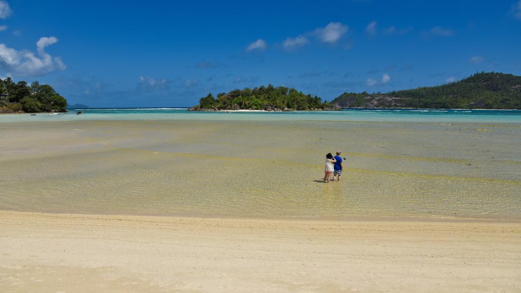 Der Port Launay Marine Park gilt als eine der schönsten Gegenden der Seychellen. Traumhafte Strände, vorgelagerte Inseln und eine malerische Bergkulisse bilden ein beeindruckendes Naturschauspiel. Tipp: Hier gibt es ein Sumpfgebiet mit einer Mischung aus Süß- und Salzwasser. Dieses können Besucher bei Flut mit dem Kajak erkunden. Der Port Launay (South) befindet sich im Port Launay Marine Park im Nordwesten von Mahé, der größten Insel der Seychellen. Der Marine Park gilt als eine der bezauberndsten Gegenden der Seychellen. Auch wenn dieser Strand weniger beliebt ist als sein nördlicher Cousin, so hat er mit einer atemberaubenden Landschaft, kristallklarem Wasser und den vorgelagerten Inseln nicht weniger zu bieten. Durch die Lage am Constance Ephelia Resort sind auch am Port Launay (South) eher dessen Gäste anzutreffen als andere Seychellen-Urlauber. Der Strand ist sehr gut mit dem Auto oder Bus über die Küstenstraße von Port Glaud zu erreichen. Parkmöglichkeiten sowie eine Bushaltestelle befinden sich in unmittelbarer Nähe. Wer einen Besuch plant, der sollte die Gezeiten im Blick haben. Bei Flut ist der Strand fast vollständig bedeckt und hinterlässt nur einen kleinen Abschnitt. Bei Ebbe hingegen geht das Meer sehr weit zurück, wodurch es besonders flach ist und einen großzügigen Strandbereich mit schönen Felsformationen freilegt. Dann ist es sogar möglich zu Fuß zur vorgelagerten, etwa 500 Meter entfernten Insel “l’Islette” zu gehen. Das Meer ist hier sicher und eignet sich – vor allem bei Flut – gut zum Schnorcheln und Schwimmen. Wer etwas mehr möchte, der findet am Port Launay ideale Bedingungen zum Kiten und Windsurfen. Ein Besuch ist also mehr als lohnenswert. Die einzigartige Mischung aus vorgelagerten Inseln, der wunderschönen Bergkulisse des Morne Blanc, kristallklarem Meer und schneeweißem Sand bildet ein beeindruckendes Naturschauspiel und ist wie geschaffen für einen traumhaften Strandtag. Ganz egal, ob Strand- oder Sonnenanbeter, Naturliebhaber, Picknicker oder Fotograf – hier kommt jeder Seychellen-Urlauber auf seine Kosten.