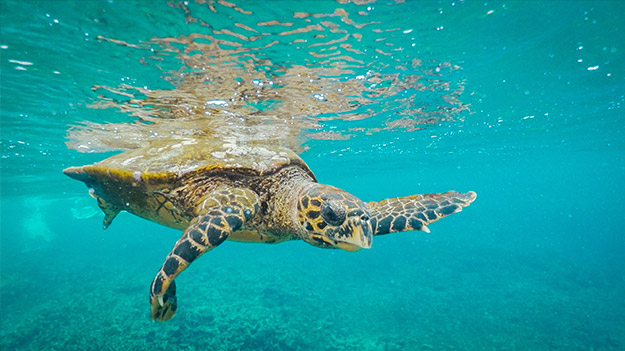 Obwohl die ersten Urlauber wieder auf den Seychellen weilen, sind die Strände noch menschenleer und können ganz für sich allein bewundert werden. Mit ein bisschen Glück treffen Sie vielleicht eine Meeresschildkröte!