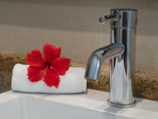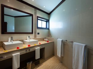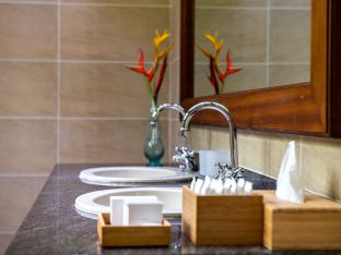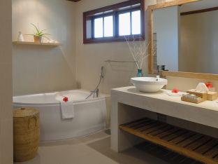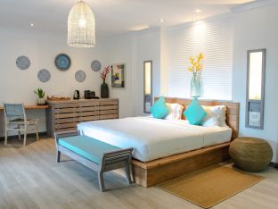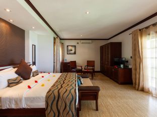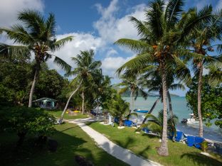 Avevamo un bungalow fantastico con vista sull'intera baia! Incredibilmente bello! Il servizio e il cibo erano ottimi! La spiaggia era incantevole, con palme e lettini prendisole. Purtroppo, il mare non era adatto alla balneazione: era molto basso e pieno di alghe! Tuttavia, la spiaggia in sé era incantevole, e si poteva prendere una canoa e nuotare un po' più lontano. L'attrezzatura per lo snorkeling era disponibile gratuitamente, e si potevano usare anche le canoe gratuitamente: fantastico!