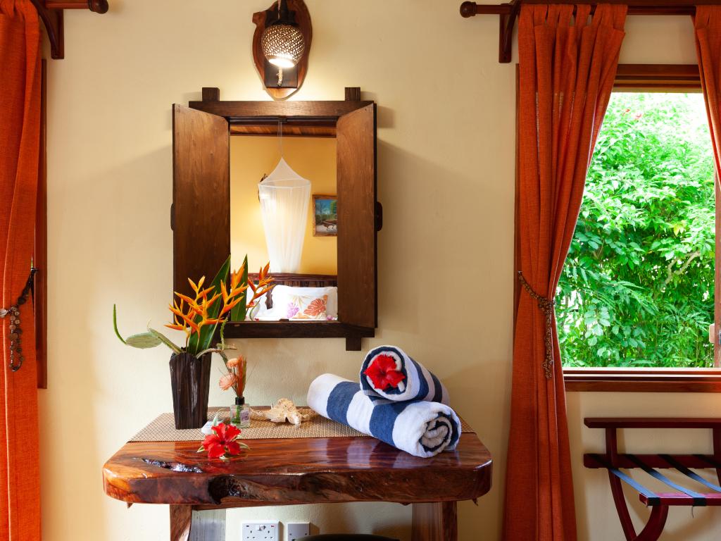 Bungalow molto spaziosi in tipico stile creolo. Molto puliti! C'è un distributore d'acqua nel bungalow. Il giardino botanico è bellissimo e curato nei minimi dettagli. Posizione centralissima. Ci siamo sentiti a casa. La colazione è stata servita da personale cordiale.