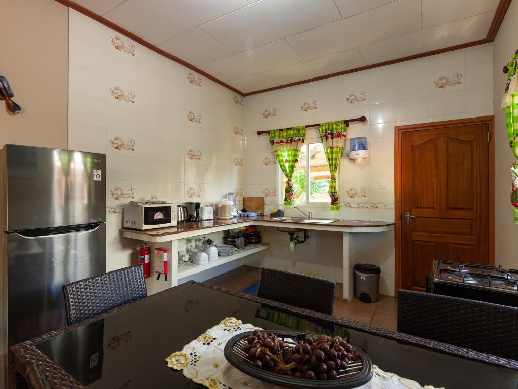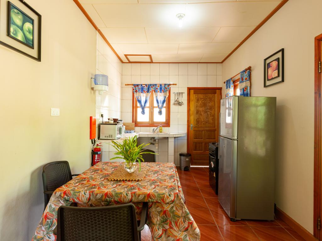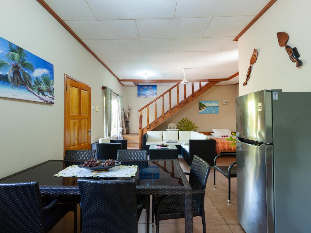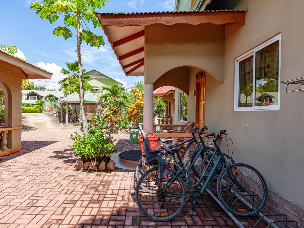 Translation (DE): GoogleTranslateLa villa, che può ospitare 6 persone, si trova su una piccola piazza condivisa da altre tre case del complesso. La nostra casa era pulita, ben attrezzata e di dimensioni adeguate. La colazione, servita all'esterno del complesso, era buona e abbondante. Le biciclette che abbiamo noleggiato in loco avevano tutte un piccolo difetto, ma erano perfette per le distanze che abbiamo percorso a La Digue. La posizione del complesso è ottima. È un po' fuori da La Passe, ma i negozi sono comunque a 5 minuti a piedi, mentre la spiaggia è a soli 3 minuti.
