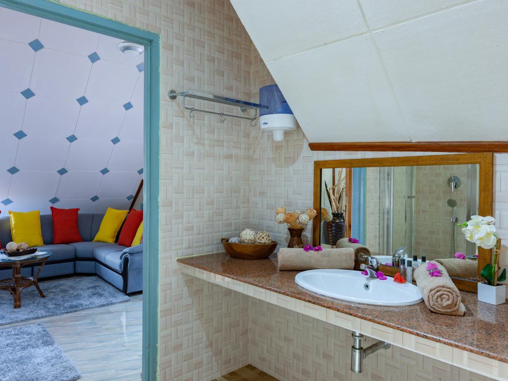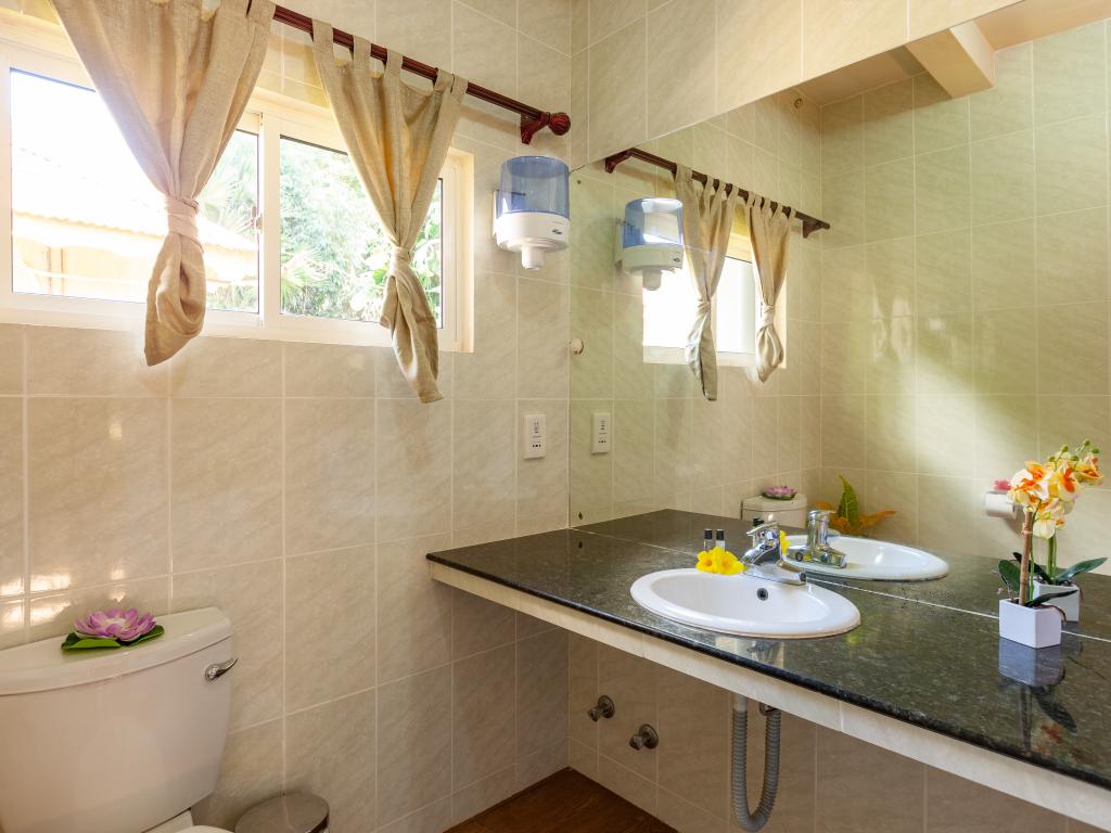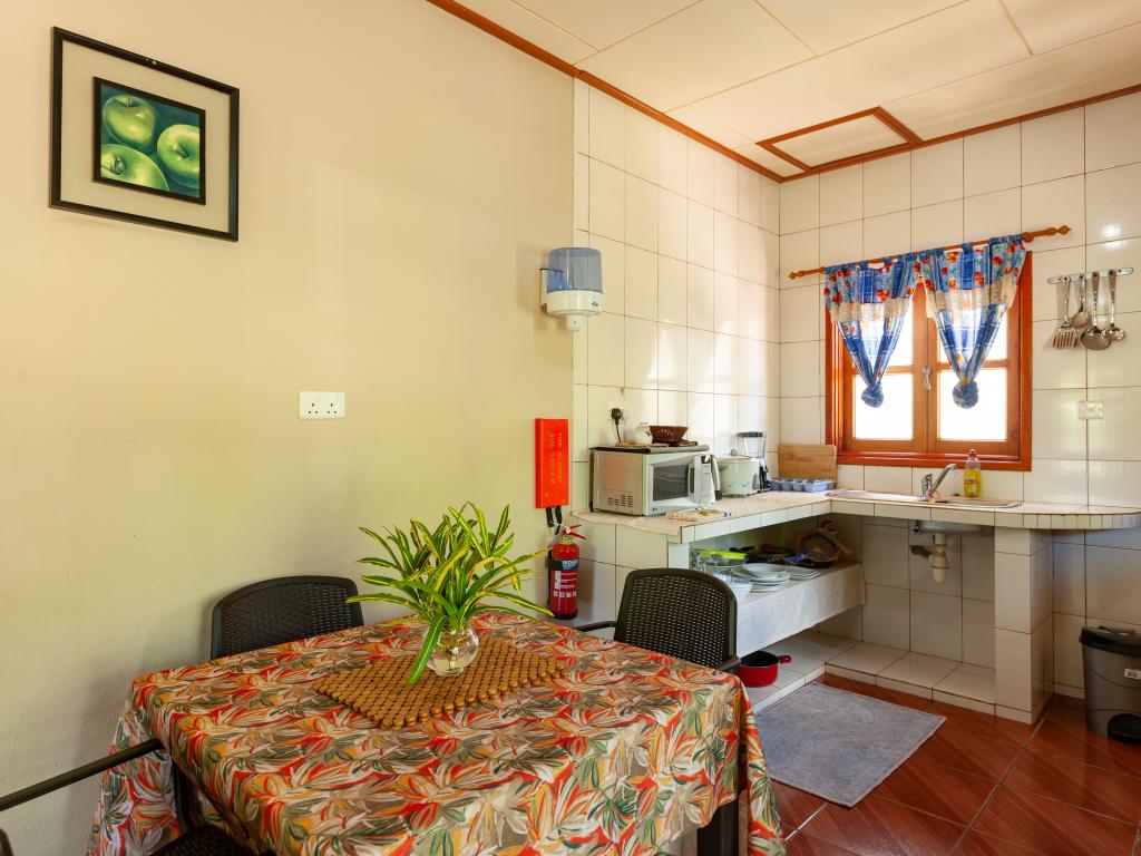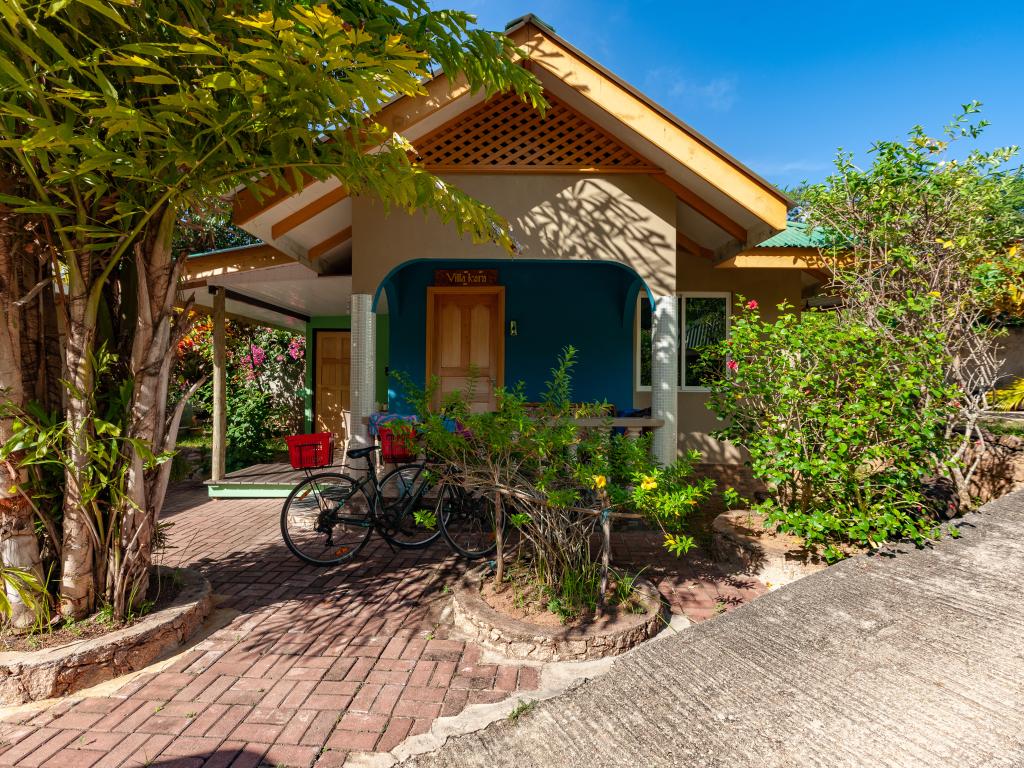 Translation (DE): GoogleTranslateLa villa, che può ospitare 6 persone, si trova su una piccola piazza condivisa da altre tre case del complesso. La nostra casa era pulita, ben attrezzata e di dimensioni adeguate. La colazione, servita all'esterno del complesso, era buona e abbondante. Le biciclette che abbiamo noleggiato in loco avevano tutte un piccolo difetto, ma erano perfette per le distanze che abbiamo percorso a La Digue. La posizione del complesso è ottima. È un po' fuori da La Passe, ma i negozi sono comunque a 5 minuti a piedi, mentre la spiaggia è a soli 3 minuti.
