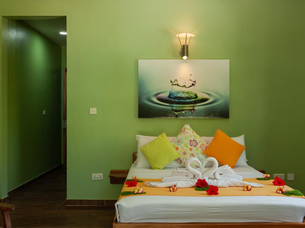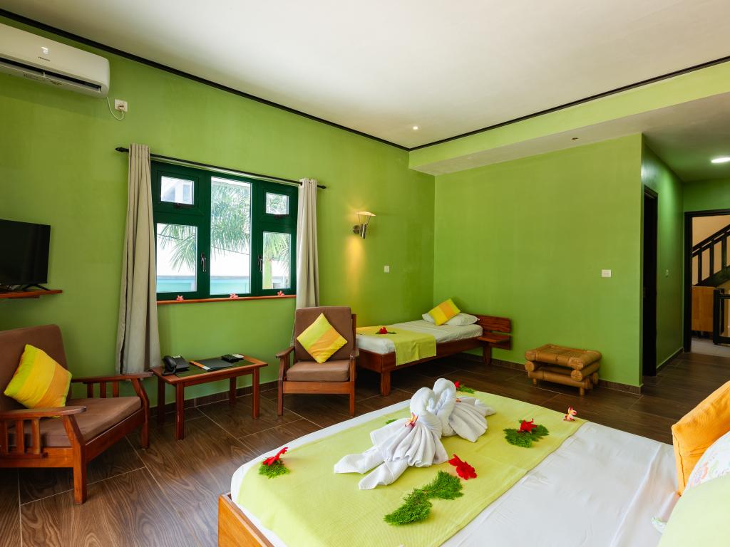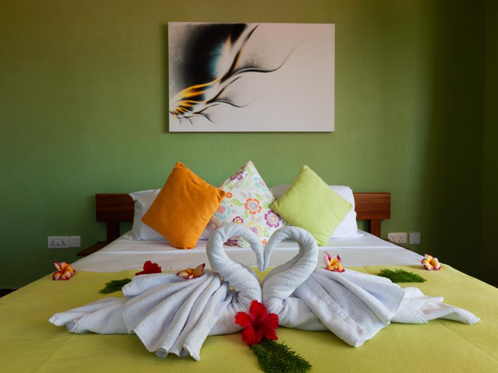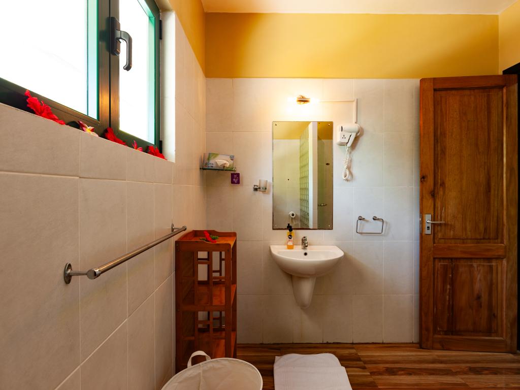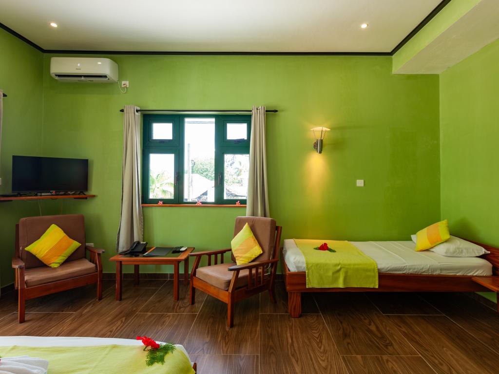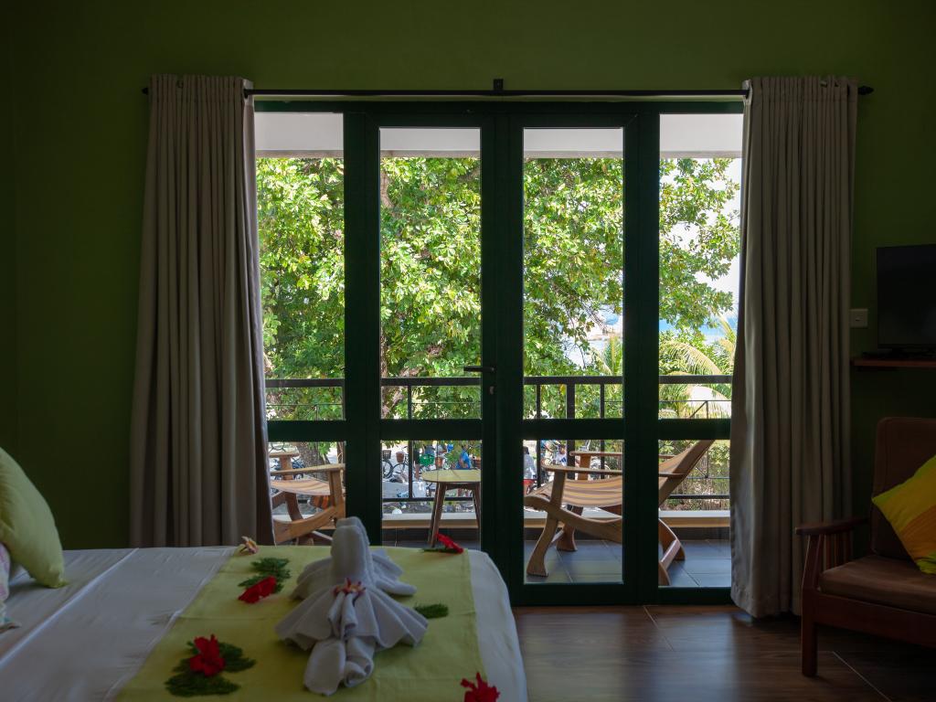 Translation (DE): GoogleTranslateLa pensione si trova proprio a La Passe, sulla strada principale, e questo è un grande vantaggio se non vuoi la pace totale o la spiaggia a portata di mano. La camera e il bagno sono puliti, ma sicuramente hanno visto giorni migliori, ma sedersi sul balcone e guardare il trambusto vale da solo il "biglietto d'ingresso". La padrona di casa non è davvero ostile, ma i suoi modi ti devono piacere. Per la colazione nella piccola cucina c'è un piatto di frutta, caffè, tè, pane tostato e uova per tutti nella preparazione desiderata. Sembra che la padrona di casa sia coinvolta anche nell'attività di noleggio di biciclette dall'altra parte della strada. Consigliato per il balcone, ma detrazioni per il bagno. Quindi solo tre stelle.