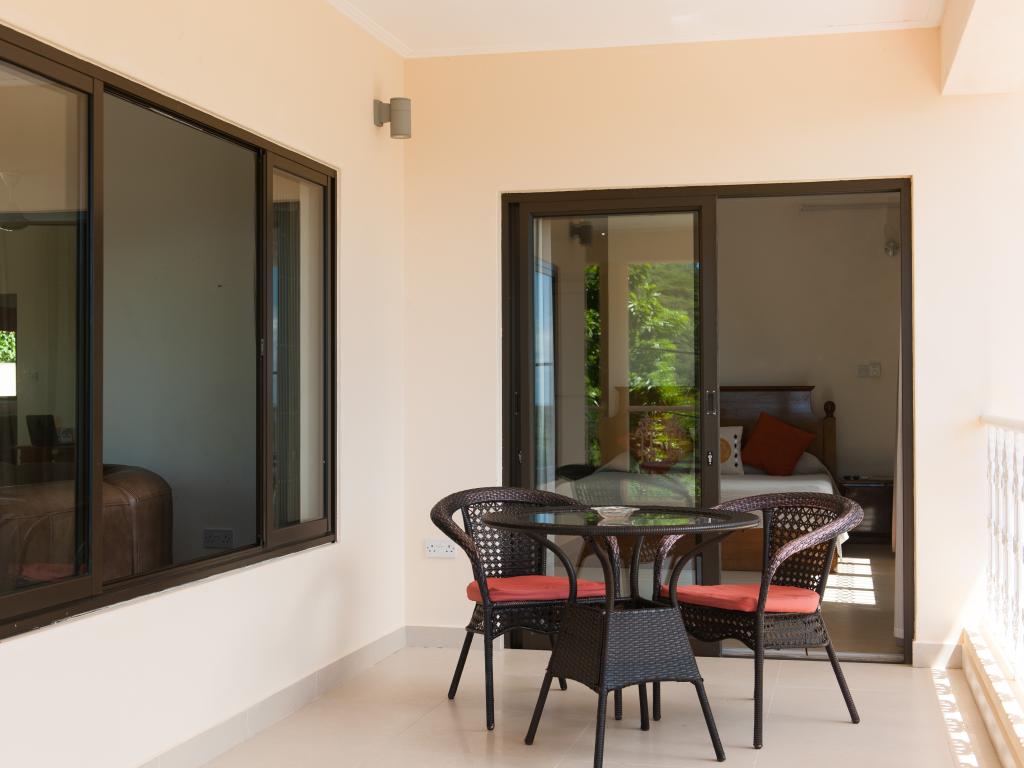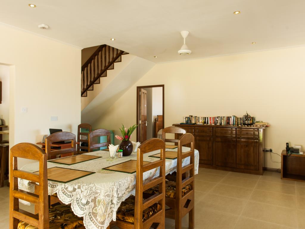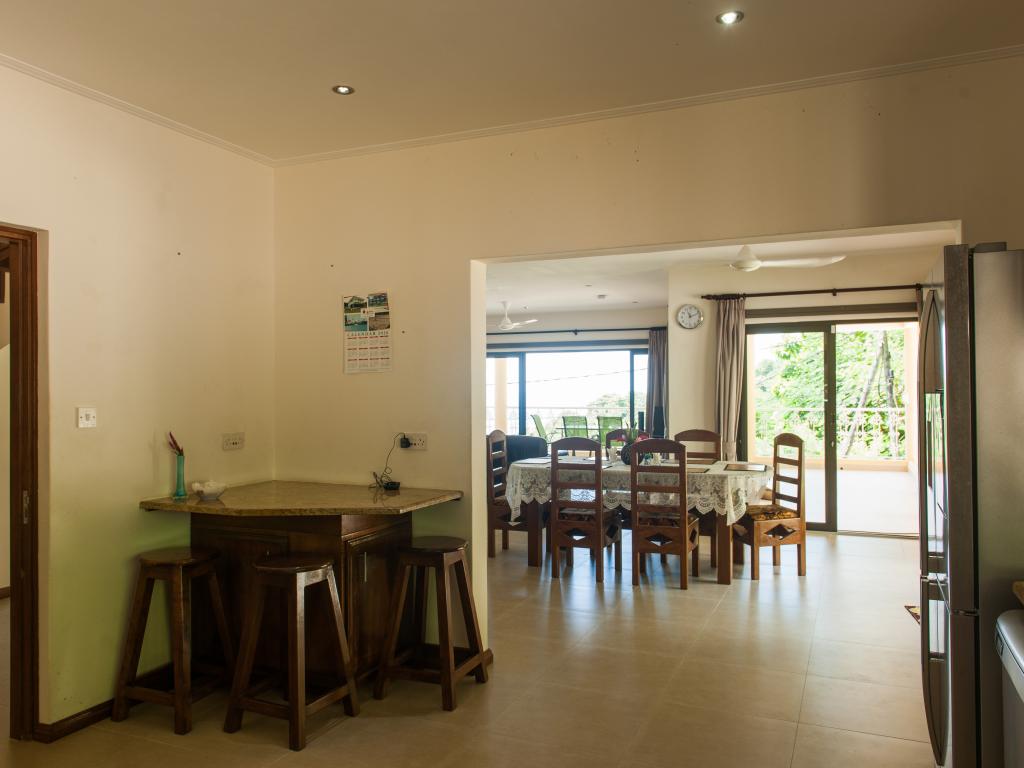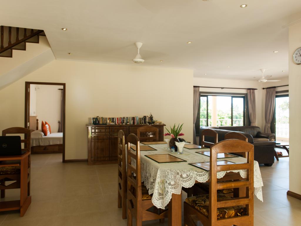 Translation (DE): GoogleTranslatePulizia: buona posizione: su una collina ripida, ma avevamo una macchina. Circa 3 km fino alla prossima città (Anse Royale). Servizio: molto buono. Una volta invitato a una festa di famiglia privata in casa (gratuito). Aria condizionata molto buona, silenziosa Puntualità: Molto buona Cortesia: Molto buono