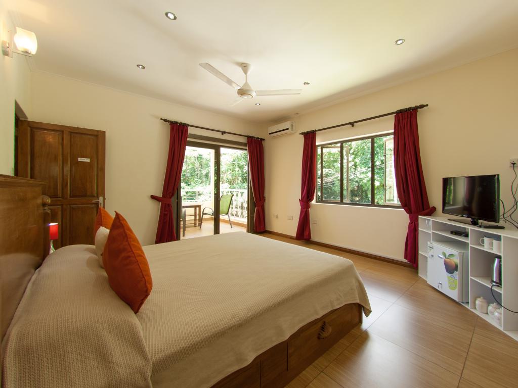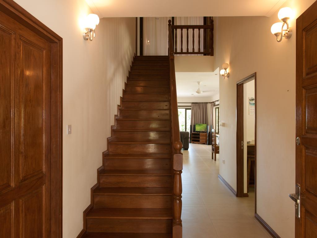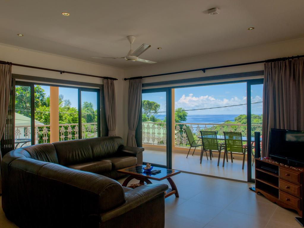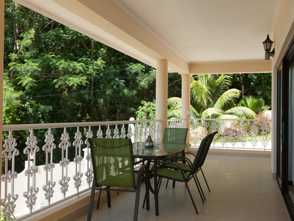 Translation (DE): GoogleTranslatePulizia: buona posizione: su una collina ripida, ma avevamo una macchina. Circa 3 km fino alla prossima città (Anse Royale). Servizio: molto buono. Una volta invitato a una festa di famiglia privata in casa (gratuito). Aria condizionata molto buona, silenziosa Puntualità: Molto buona Cortesia: Molto buono
