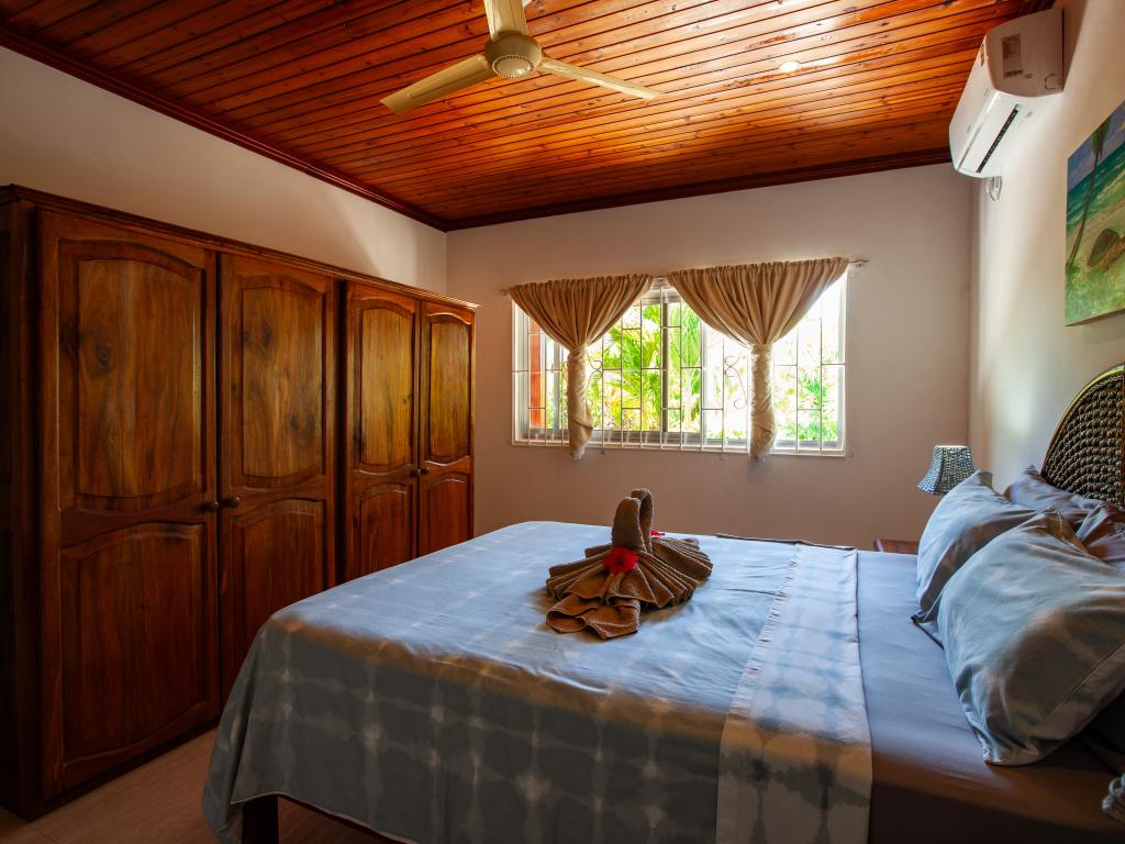 Translation (DE): GoogleTranslatePadroni di casa molto attenti. L'alloggio si trova nella tranquilla parte meridionale dell'isola, la spiaggia è a pochi passi a piedi. Si consiglia di noleggiare un'auto. Bellissimo giardino curato con cura. Il letto veniva rifatto e il bagno pulito ogni giorno. Aria condizionata molto efficace e silenziosa. A pochi passi c'è un piccolo supermercato. Sarei felice di tornare di nuovo.