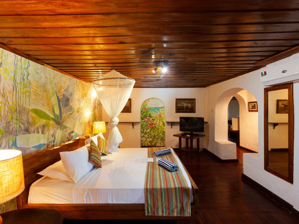 Sistemazione mega. Avevamo la suite dei pirati. Tuttavia, l’accesso diretto all’acqua non è del tutto privo. Devi guardare da vicino come entri in acqua. La stanza è un sogno fatto di legno. Il cibo e il supporto in loco sono stati fantastici!