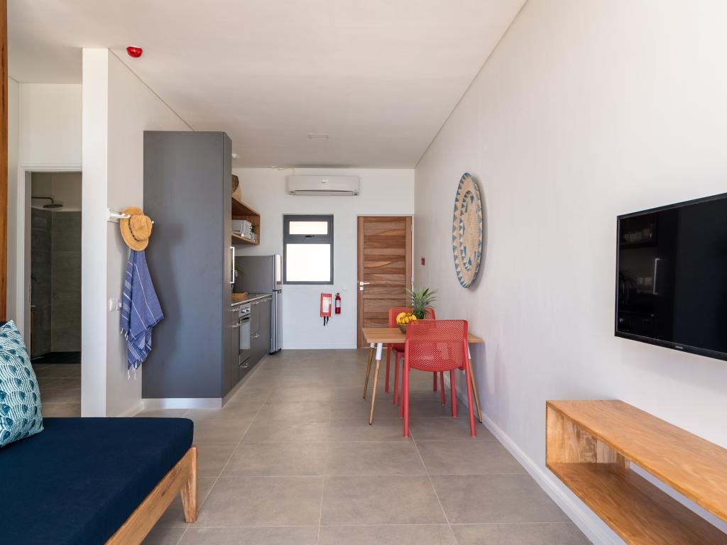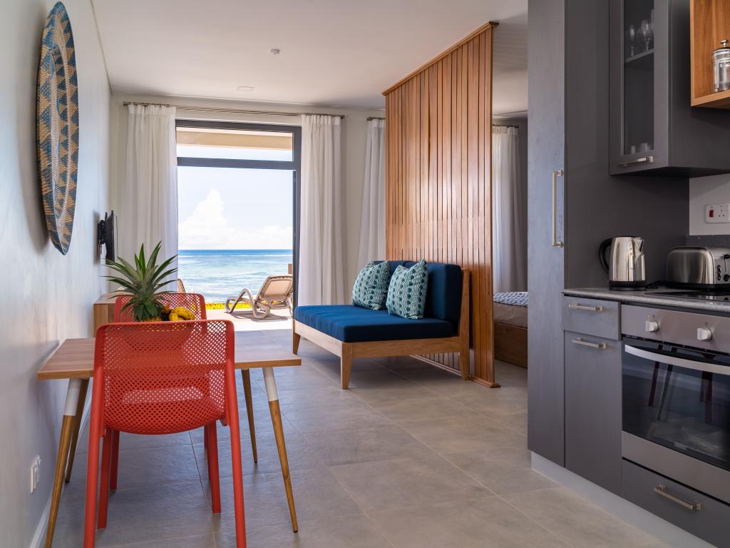 L'appartamento La Desirade si trova in una posizione ideale, direttamente sull'Oceano Indiano sulla costa orientale di Mahé. Dalla vostra terrazza privata potrete affacciarvi sul mare e rilassarvi. Soggiornando a soli pochi passi da una spiaggia di sabbia bianca, potrete fare lunghe passeggiate, nuotare e fare snorkeling. Da qui è possibile raggiungere a piedi negozi, ristoranti e take-away.