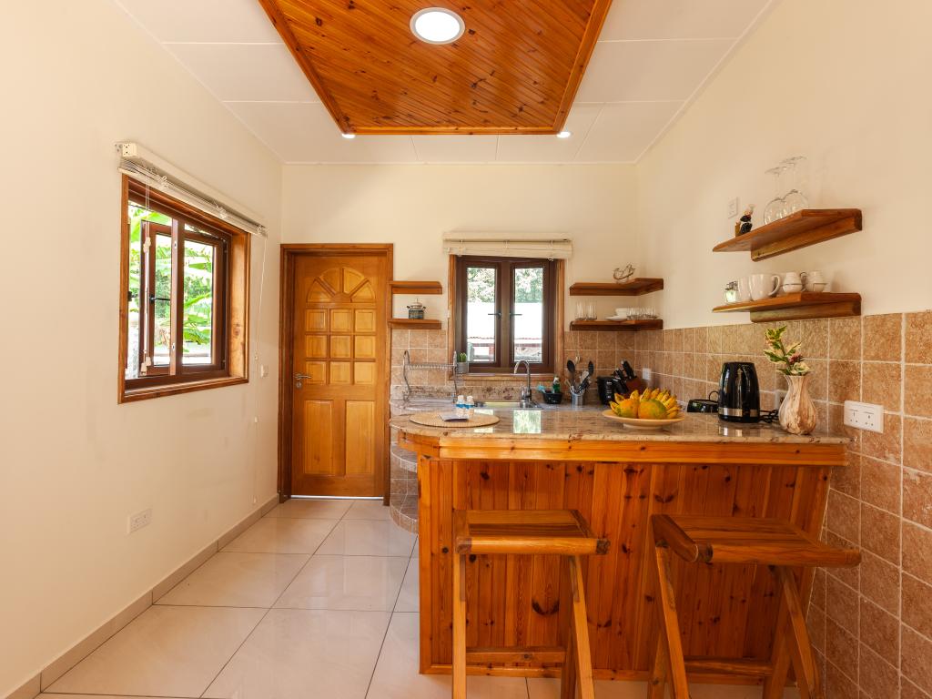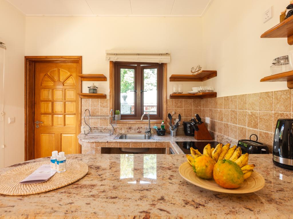 Translation (DE): GoogleTranslateQuesto alloggio merita almeno una stella in più sulla scala di valutazione! Abbiamo trascorso 9 giorni nell'appartamento Belle Vue (sopra), ed è stato di gran lunga il momento clou del nostro viaggio di 4 settimane alle Seychelles. L'intero appartamento è in condizioni eccezionali; tutto è arredato con grande attenzione ai dettagli ed è in condizioni eccellenti. L'aria condizionata dell'appartamento permette un perfetto controllo della temperatura. La cucina è superbamente attrezzata e cucinare qui è un piacere. La veranda è arredata con comode sedie a sdraio e un grande tavolo da pranzo con sedie. Le foto non rendono giustizia a questa meravigliosa proprietà; il bellissimo giardino tropicale è ora cresciuto splendidamente. Elluna è un'host molto accogliente; ci siamo sentiti completamente a casa con lei fin dal primo momento. Siamo stati in contatto quotidianamente, ci siamo presi cura di noi e abbiamo ricevuto ogni sorta di ottimi consigli per il nostro soggiorno. Torneremo qui per il nostro prossimo soggiorno alle Seychelles!