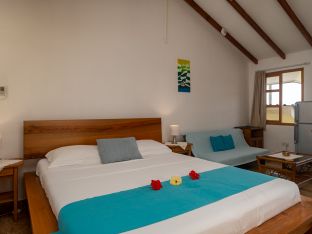 Translation (DE): GoogleTranslateMarie-Ange e sua figlia sono molto simpatiche, l'alloggio era molto pulito e funzionale. Situato a 10/15 minuti a sud dell'aeroporto di Mahé, è molto ben posizionato per visitare l'isola. Un supermercato e un take away sono a 5 minuti a piedi dall'alloggio, molto pratici. Piccoli cani piatti che abbaiano di notte! Fornire tappi per le orecchie!