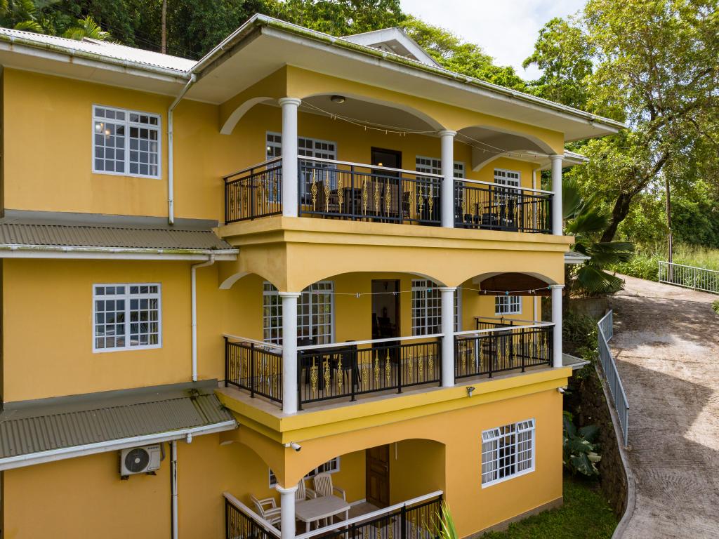 Gli "Anse Royale Bay View Apartments" sono situati in una posizione tranquilla ed elevata, offrendo una vista spettacolare sulle montagne circostanti e sul mare scintillante. La spiaggia più vicina, Anse Royale, si trova a soli 750 metri di distanza. Caffè e ristoranti sono facilmente raggiungibili dagli appartamenti. Nelle vicinanze ci sono anche ottime opportunità per fare escursioni e giocare a golf.
