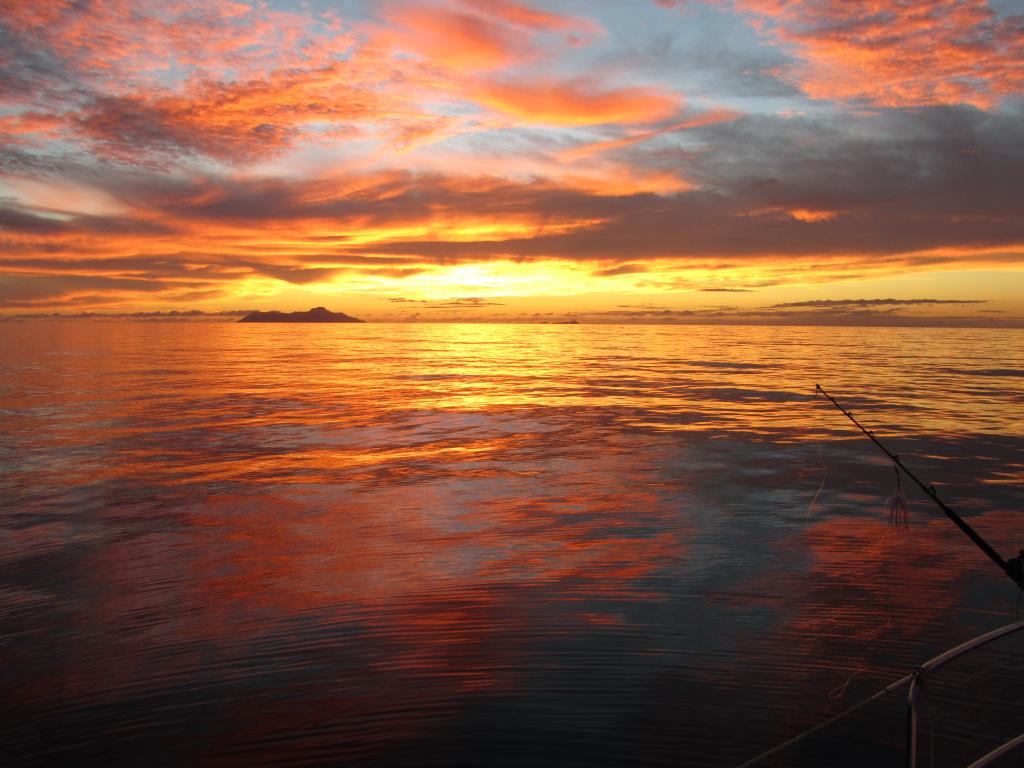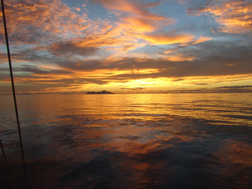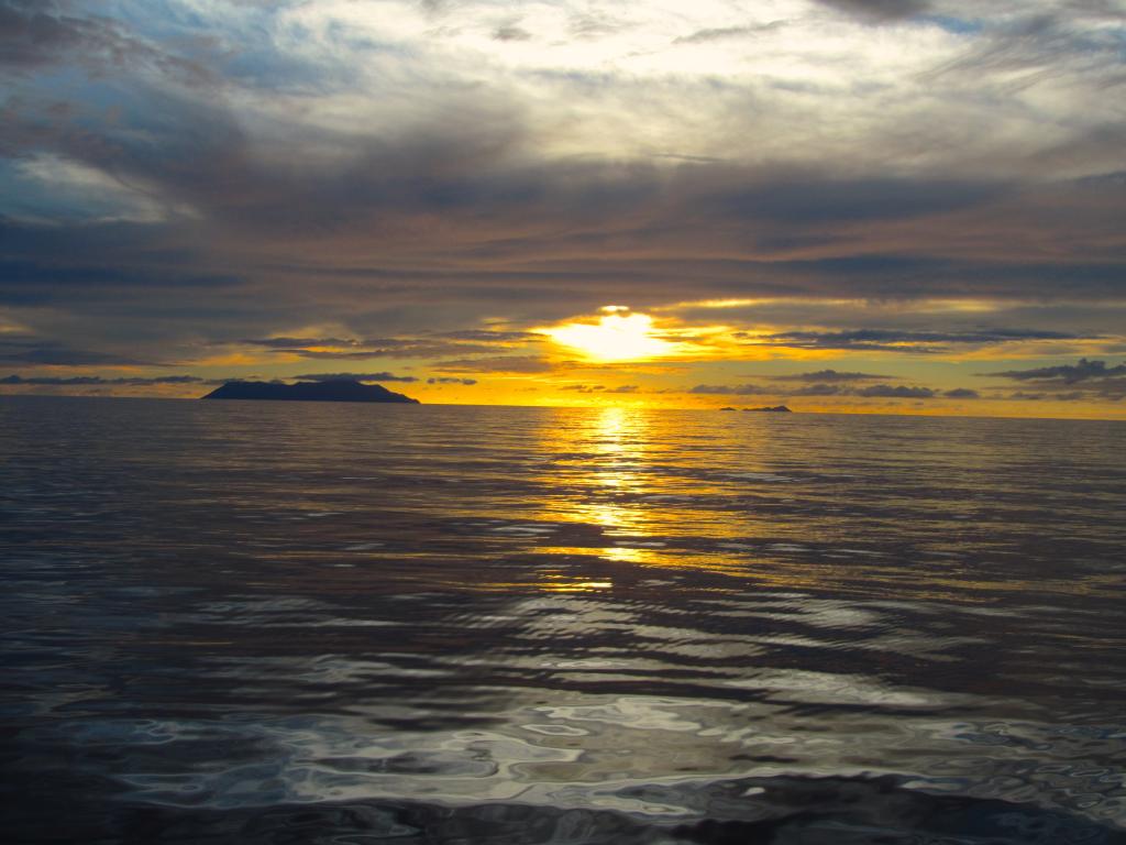 Ritornati a bordo facciamo rotta verso Mahé, mentre il cielo si riempie di colori che cambiano istante per istante e che ci costringono a scattare decine e decine di foto, ad un tramonto interminabile ed insolito per i colori del mare, del cielo, ecc. Penso nessun regista possa immaginare di creare quanto abbiamo visto e fotografato.