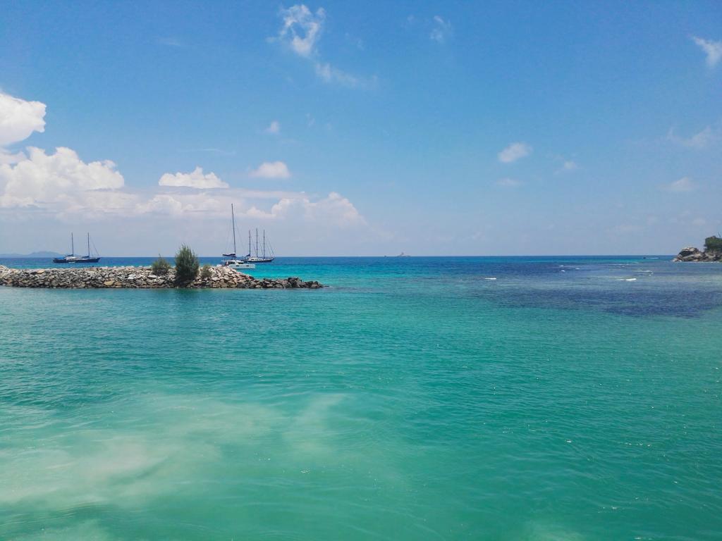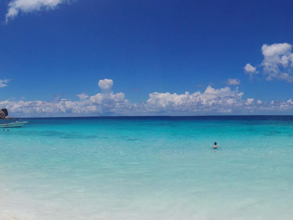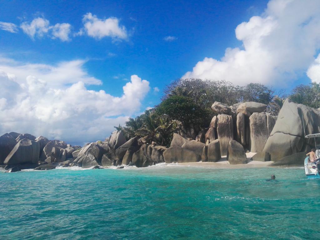 Atterrati finalmente a Mahé abbiamo dovuto affrontare altre due ore circa tra trasferimento al porto di Victoria e successiva traversata con traghetto Cat Cocos fino all'isola di La Digue. Quando, dopo aver dormito un po' sulla barca, abbiamo riaperto gli occhi, ci siamo trovati di fronte il paradiso! Increduli di fronte a dei colori così irreali, come il verde smeraldo dell'acqua e a dei panorami così fiabeschi, non abbiamo potuto far altro che scattare innumerevoli foto da inviare a chi, da casa, attendeva notizie sul nostro arrivo.