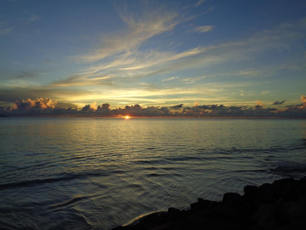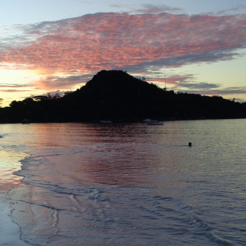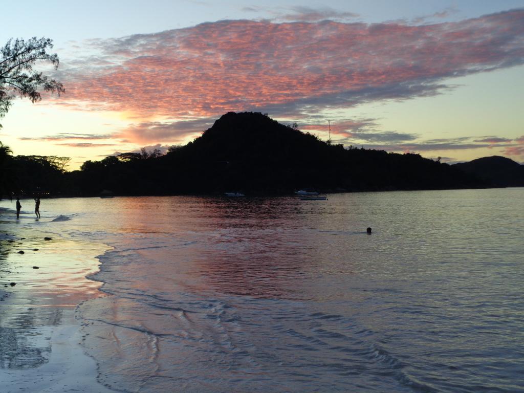 Der Super-Sandstrand ist ca 3 km lang, feinsandig und kaum bevölkert. Nur am Wochenende kommen ein paar mehr Gäste. Wegen des vorgelagerten Riffs gibt es praktisch keine Wellen und auch wenig Wasseraustausch - das Wasser wird schnell sehr warm, deutlich über 30 Grad. Die vorgelagerten Insel und die Farbenpracht muten karibisch an, alles sieht einfach wunderschön aus. Ein täglicher Strandspaziergang gehörte zu unseren Aktivitäten immer dazu. Unabhängig von den Gezeiten war Schwimmen immer möglich. Die Anzahl der in der Bucht ankernden Boote hielt sich im Rahmen.