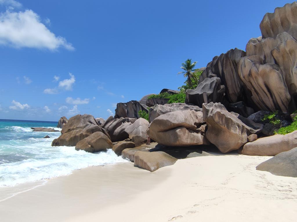 Le spiagge sono incredibili: di fronte all'avventore si spalancano le più intense sfumature di azzurro del mare e del cielo, costantemente attraversato da greggi di candide nubi dalle forme morbide. Alle spalle domina il verde della lussureggiante foresta pluviale. Sotto i piedi, la sabbia bianca e soffice cede docile al passo. Incorniciano il tutto gli imponenti massi granitici, che donano un tocco distintivo al panorama, rendendolo unico e riconoscibile a colpo d'occhio perfino in foto.