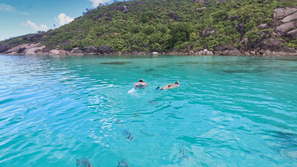 Il tour inizia alle 10:00 circa e termina alle 16:30 circa. Partendo dal porto di Eden Island, si naviga verso la costa settentrionale di Mahé. Passerete davanti alla baia di Beau Vallon con la sua spiaggia di sabbia bianca e ad Anse Major. In seguito, la prima sosta sarà ad Anse du Riz, una fantastica spiaggia sabbiosa con una laguna d'acqua dolce dove potrete dare da mangiare ai pesci e fare snorkeling. Un delizioso barbecue creolo sarà servito sulla spiaggia, in modo da potersi rilassare e godersi l'ambiente. La tappa succesiva è Cap Ternay per un secondo giro di snorkeling. Qui, se si ha fortuna, si ha la possibilità di incontrare alcuni squali e di scoprire i coralli Infine, si tornerà a Eden Island, per ammirare il panorama mozzafiato della costa di Mahé e creare dei ricordi indimenticabili dell'incredibile avventura vissuta alle Seychelles.