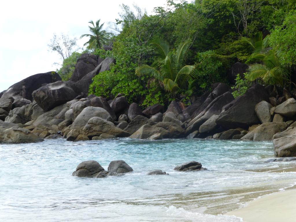 Als dritte Insel haben wir Praslin besucht, wo wir im Coco de Mer & Black Parrot Suites untergebracht waren. Das Hotel liegt etwas abseits von anderen Siedlungen, für Gäste die wie wir nur Frühstück gebucht haben bietet die Strandbar eine umfangreiche und vergleichsweise günstige Auswahl an Gerichten zum Abendessen an.