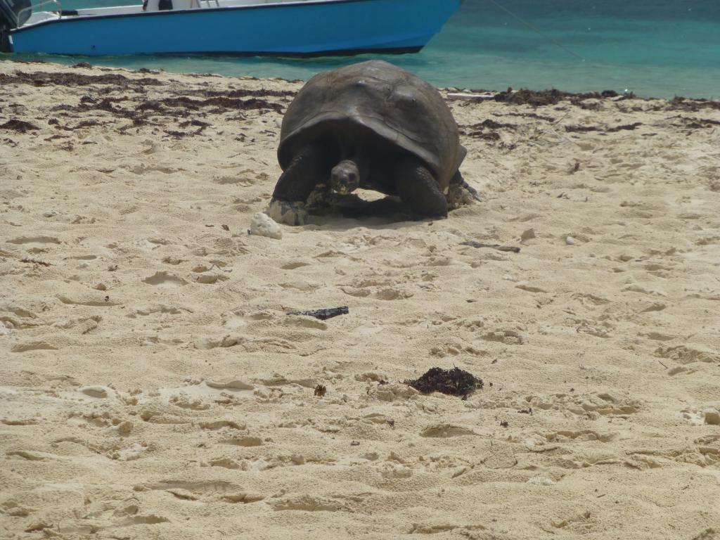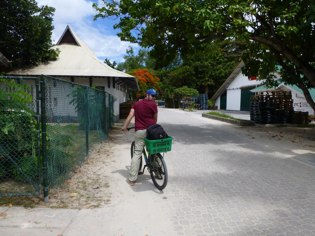 Auf La Digue lässt sich (fast) alles mit dem Fahrrad einfach und schnell erreichen (Tipp: unbedingt Bremsen testen, evtl. Fahrradlichter mitnehmen): Die Straßen sind gut befestigt, nicht so steil wie auf den beiden größeren Inseln und es gibt kaum motorisierten Verkehr. Auf unseren Radtouren haben wir am Straßenrand auch des Öfteren Riesenschildkröten angetroffen.