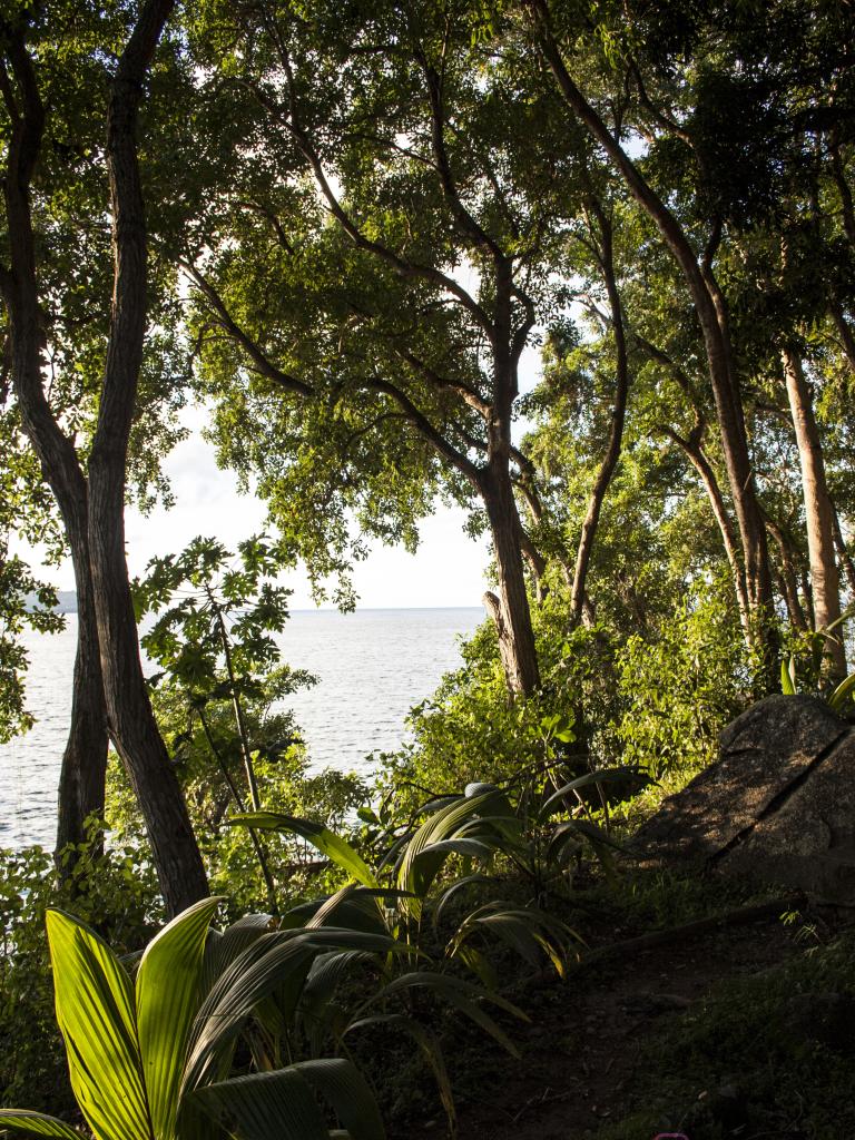 In der Nachmittagssonne wird’s uns zu heiß, wir gehen zurück zu den Fahrrädern. Dort finden wir ein kleines Lokal mit überraschend gutem Essen (das Lokal an sich sieht nicht danach aus). Zurück am Hafen trinken wir in einem Fischrestaurant einen der besten Vanille Milkshakes überhaupt (man merkt die Vanilleplantage auf der Insel), kaufen ein paar Souvenirs und fahren um 17 Uhr wieder zurück. Leider verläuft die Rückfahrt nicht reibungslos – das Hotel hat uns falsch informiert: wir müssen den Ausflug nicht an der Rezeption, sondern direkt im Boot zahlen, deshalb haben wir zu wenig Geld mit. Allerdings will er uns auch bei der Einstiegstelle vom Vormittag (in der nächsten Bucht) aussteigen lassen. Dort ist weit und breit kein Hotelauto zu sehen (ohne das Missgeschick mit dem Geld hätten wir gezahlt und wären dann ohne Weiterfahrmöglichkeit am falschen Strand gestanden). Also bringt er uns zum Hotelstrand, wir holen genug Geld aus dem Zimmer und alles ist in Ordnung. Am Abend gibt’s im Hotelrestaurant ein kreolisches Buffet, das ich nur wärmstens empfehlen kann. Sensationelle Salate & Vorspeisen! Dazu sehr gute Live Musik.