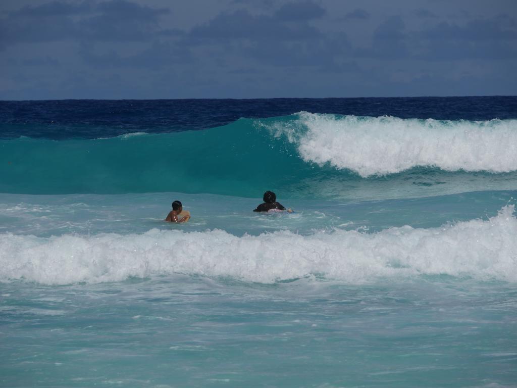 Prompt haben wir auch gleich ein Brautpaar gesehen, welches die Filmkulisse abrundete. Ja - natürlich sehr schön - aber wir hatten auf unserer Reise ja schon wirklich viele Traumstrände gesehen, so dass wir fast ein bisschen erschrocken über die vielen Menschen hier waren. Da gab es mehrere Verkaufsstände am Strand, deren freundliche Besitzer zwar wunderbare frische Fruchtsäfte pressten -aber das hat uns alles doch fast ein bisschen überfordert. So fuhren wir am nächsten Tag mit unseren geliehenen Fahrrädern an die Südostküste der Insel. Das Fahrradfahren auf La Digue ist ein Abenteuer für sich, denn die wenigsten Fahrräder wären in Deutschland zum Fahren zugelassen. Weder Bremsen noch Gangschaltungen funktionierten, so dass wir einen großen Teil auch einfach geschoben haben. Doch dann am Ziel waren wir mehr als beeindruckt von den Wahnsinnswellen hier an der Grande Anse.