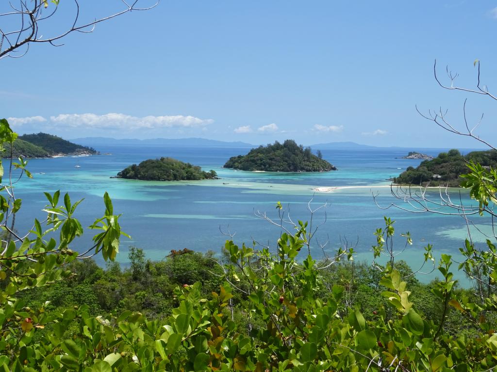 Auf Cerf angelangt, begaben wir uns auf eine kleine Wanderung zum Aussichtspunkt in Richtung St. Anne Marine National Park. Von hier aus hatten wir einen wunderbaren Blick auf die hinter Cerf liegenden Inseln.