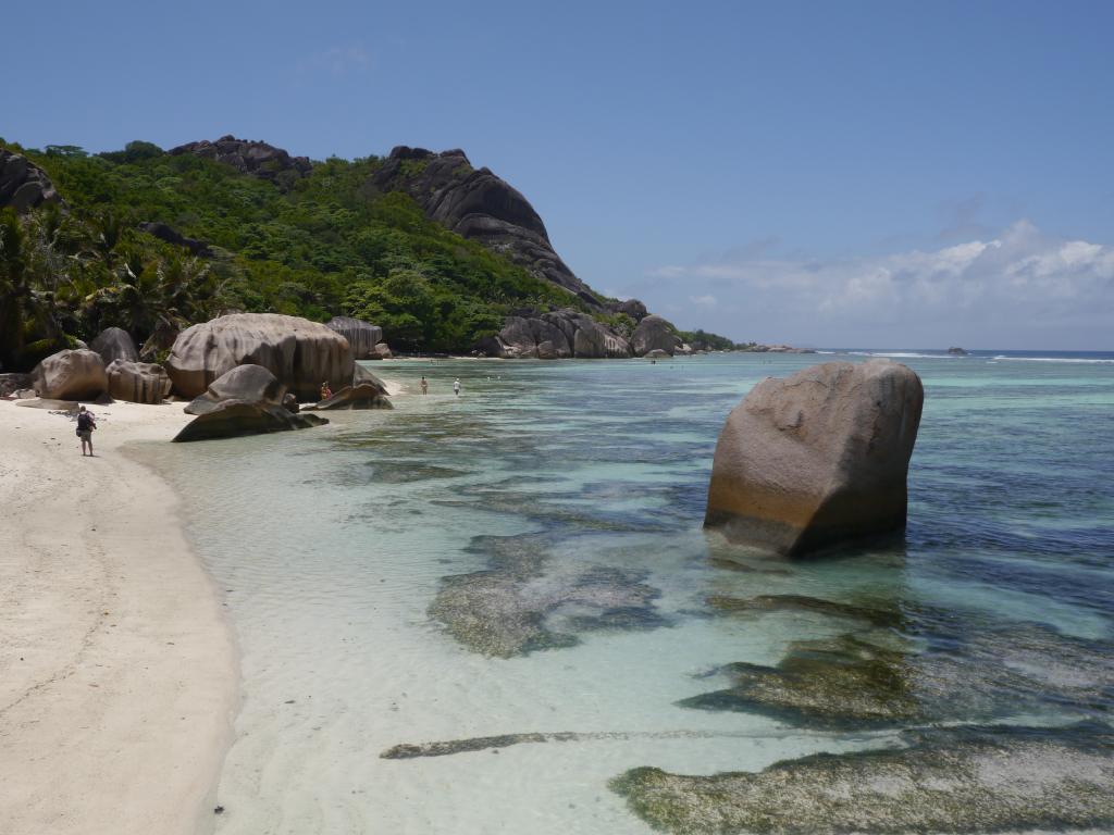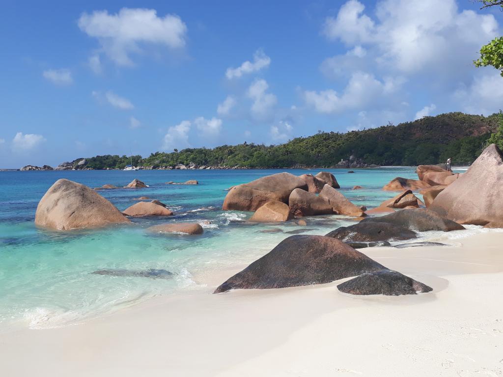 Weitere sehr schöne Strände, die alle ihren eigenen Charakter haben und teilweise nur von wenigen Menschen besucht werden sind der Anse la Blague und der Anse Consolation. Besonders hervorheben wollen wir auch die Anse Georgette. Die blaue Farbe des Wassers ist hier unglaublich. Wer ein bisschen fit ist und nicht über das anliegende Hotel (mit Voranmeldung) hingelangt, kann vonAnse Lazio über einen ca. 1-stündigen Wanderpfad die Anse Georgette erreichen. Dies ist für Urlauber zu empfehlen, die etwas Anstrengung nicht scheuen und auch das Land und den Urwald Praslins sehen wollen (was uns sehr gut gefallen hat). Belohnt wird man mit einer tollen Aussicht auf das Meer und benachbarte Inseln. Am beeindruckendsten ist jedoch der Ausblick auf die Anse Georgette von oben herab und die Klarheit, sich nach ein paar verbleibenden Schritten im azurblauem Wasser abkühlen zu dürfen.