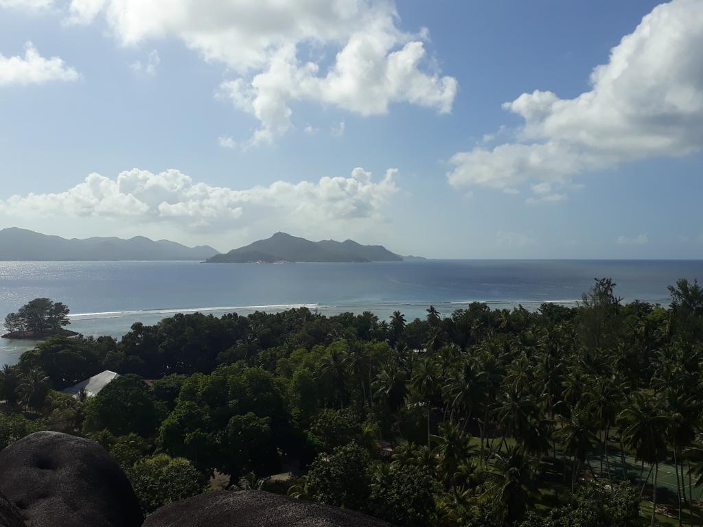 Wer sich nicht nur selbst verpflegen will, kann auf La Digue auf einige Take Away Stände zurückgreifen. Hier kann man für ca. 4 -5 € die leckere einheimische Küche essen. Auch sehr zu empfehlen ist das auf dem Berg gelegene Restaurant Snack Bellevue. Für umgerechnet 30 € (ohne Getränke) kann man hier ein 3-Gänge Menü genießen und wird sogar von einem Shuttle direkt an der Unterkunft abgeholt und natürlich wieder zurück gebracht. Der Ausblick über die Westküste und auf Praslin ist wirklich wunderschön. Wer also einen romantischen Abend verbringen und den Sonnenuntergang bei einem netten Essen und einem Glas Wein oder Bier genießen will, der ist hier genau richtig. Unsere Kontaktperson hatte die Reservierung ganz unkompliziert per WhatsApp entgegengenommen und für uns erledigt.