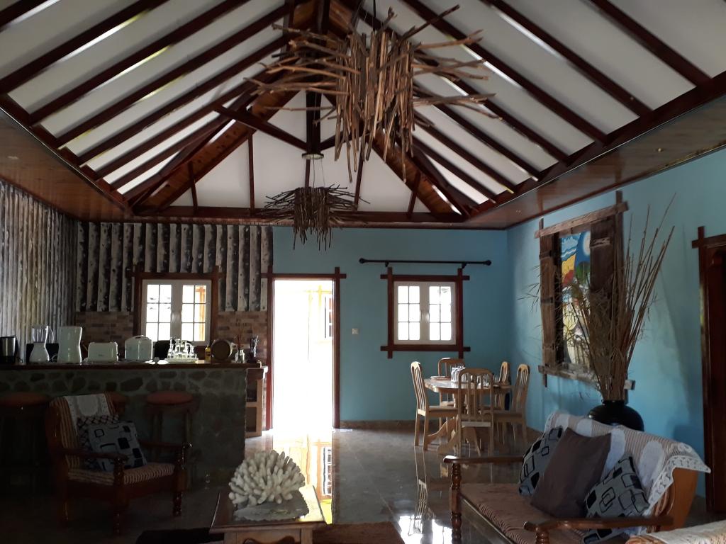 Nach ca. 1 Stunde Fähre und einer 15-minütigen Fahrt hatten wir die Sea View Lodge auf Praslin erreicht. Mit unserem Bungalow „Apple Villa“ waren wir durchaus zufrieden. Die Zimmer und die Möbel sind jedoch schon etwas abgewohnt und die Küche nicht gerade gut ausgestattet. Salz und Gewürze sucht man hier leider vergeblich. Zudem mussten wir immer wieder technische Probleme mit dem Ofen, dem Herd und auch mit dem Fernseher feststellen. Auch der Rauchmelder direkt am Eingang war leider etwas überempfindlich und löste bei fast jedem Kochgang aus. Zum Glück konnten wir uns jedoch immer auf unseren den hilfsbereiten Service verlassen, der von Morgens bis Abends auf Abruf zur Verfügung steht. Abgesehen von diesen kleinen „Problemchen“, haben wir uns trotzdem sehr wohl gefühlt, was unter anderem an dem unschlagbaren Ausblick aufs Meer lag, dass ca. 20 Meter vor unserer Terrasse über eine kleine Straße zu erreichen ist. Sehr angenehm war auch, dass man jeden Tag individuell entscheiden konnte, ob man Frühstück oder Abendessen in Anspruch nehmen will. Gerade das Abendessen wird von der Eigentümerin mit viel Liebe zubereitet und ist sehr zu empfehlen! Falls es uns jedoch wieder einmal in die Sea View Lodge ziehen sollte, würden wir uns doch eher für eine der neueren Stelzenvillen entscheiden, die etwas höher am Hang liegen.