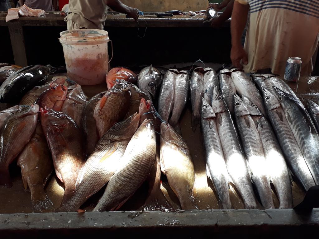 Kaufen Sie sich Fisch am Straßenrand direkt bei den Fischern. Das sieht auf den ersten Blick etwas unhygienisch aus. Der Fisch kommt aber direkt aus dem Meer und ist deshalb immer noch um einiges frischer als auf jedem Markt in Deutschland. Wir haben für einen großen Thunfisch in Sushi-Qualität umgerechnet nur ca. 4 € bezahlt! Gegen ein paar EUR zusätzlich, wird einem der Fisch sogar direkt ausgenommen und entschuppt.