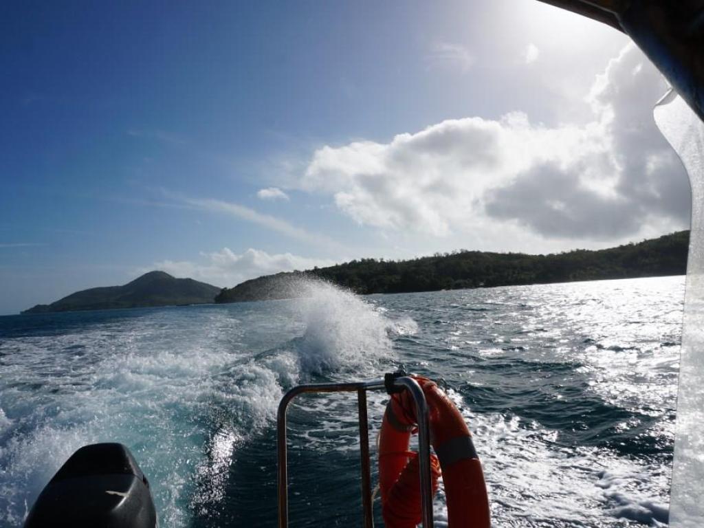 Kurz darauf wurden wir auch schon von einem kleinen Boot abgeholt und nach Cerf gebracht. Dort wurden wir direkt am Steg von den Eigentümern unserer Unterkunft, dem französischen Ehepaar Catherine und Jean Marc, freundlich begrüßt und zu dem von uns gemieteten Haus, der Beach Villa des Tropical Sanctuary