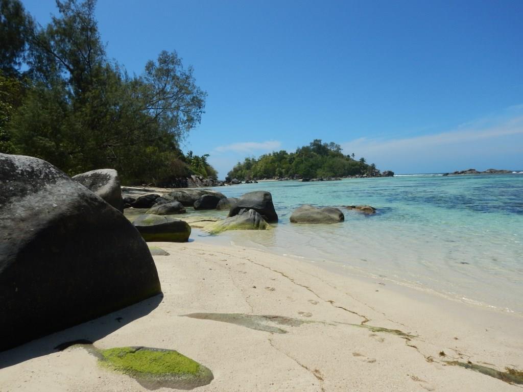 , im Süden von Cerf, die man bei Ebbe zu Fuß erreichen kann. Auch dort war das Wasser glasklar und der Strand war menschenleer.