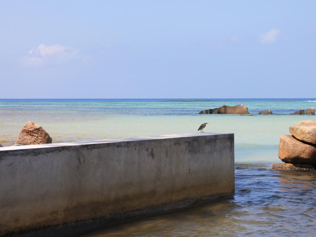 Aber da ist mehr: auf La Digue allein gibt es einiges zu entdecken (mit Fahrrad und zu Fuß) und auch für Schaukelstuhl-Abenteurer wie wir (fahren Sie einfach wie alle ohne Licht mit dem Fahrrad durch den kleinen Ort und ihr Puls beschleunigt sich, oder gehen sie auf die höchste Erhebung der Insel, dem 333m hohen Nid d'Aigle, um die Aussicht und den Sonnenuntergang zu genießen. Vergessen Sie aber nicht, eine große Flasche Wasser mitzunehmen! Ich wette, auch jüngere als wir werden Schweiß lassen. Und was für eine Flora und Fauna!Flora und Fauna drei Arten von Schildkröten, die Seychellen-Flughunde, der seltene Seychellen-Paradiesschnäpper mit seinem eigenen kleinen Naturreservat (Veuve Reserve) auf La Digue, die wunderschönen und zutraulichen Madagaskarweber, Vögel am Strand Vögel am Strand und im Tropenwald der Insel und natürlich Coco de Mer,…hier scheinen alle bekannten tropischen Frucht- und Nutzpflanzen zu gedeihen und viele kommen auf die Speisekarte. Und wer dann immer noch nicht genug hat, dem empfehle ich die allgegenwärtige Nephila inaurata madagascariensis (eine Seidenspinnenart, ok, musste ich nachschauen) und kulturell? - der Takamaka-Rum, die Musik und das Wegweiserschild auf La Digue nach Unterhaching!