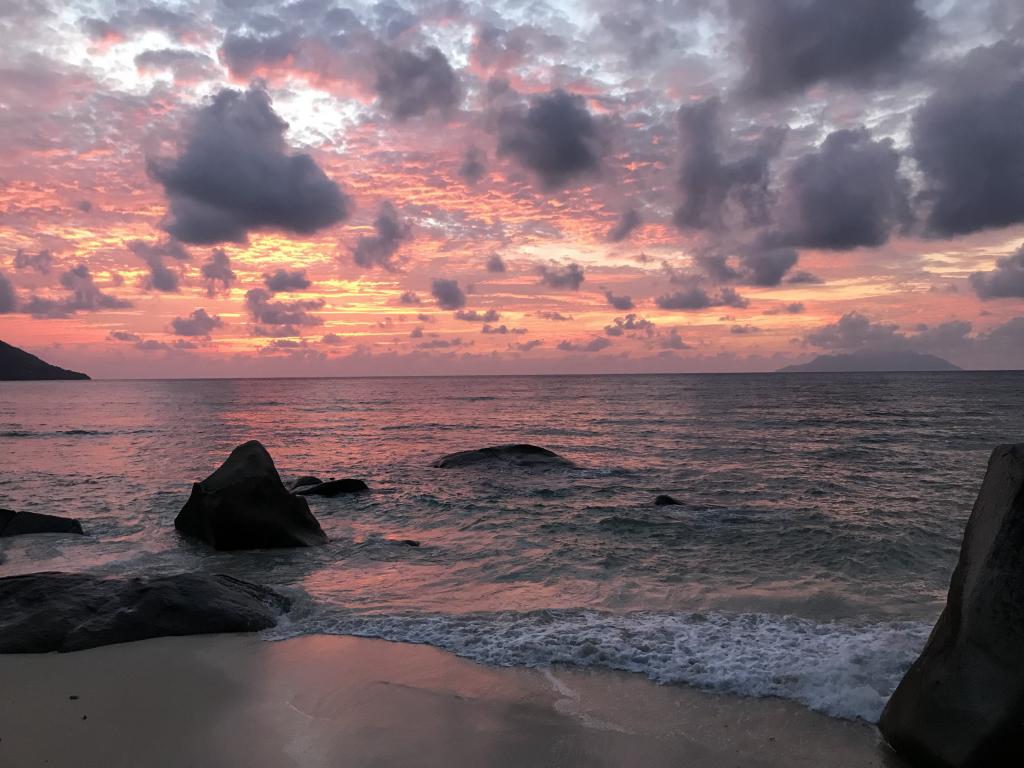Dort angekommen, haben wir uns auf unseren Bungalow gefreut, der nur durch eine Straße vom Meer getrennt und nur wenige Gehminuten vom Beau Vallon entfernt war. Auch hier haben wir uns wieder einen Mietwagen vor Ort gebucht, damit wir auch jede Ecke flexibel erreichen können. Nicht weit von unserer Unterkunft entfernt, ist der Sunset Beach. Dieser ist etwas versteckt, da man von der Straße aus einen kleinen Trampelpfad durch den Wald gehen muss. Dementsprechend war auch wieder nicht viel los und man konnte am schönen Strand relaxen, planschen und schnorcheln.