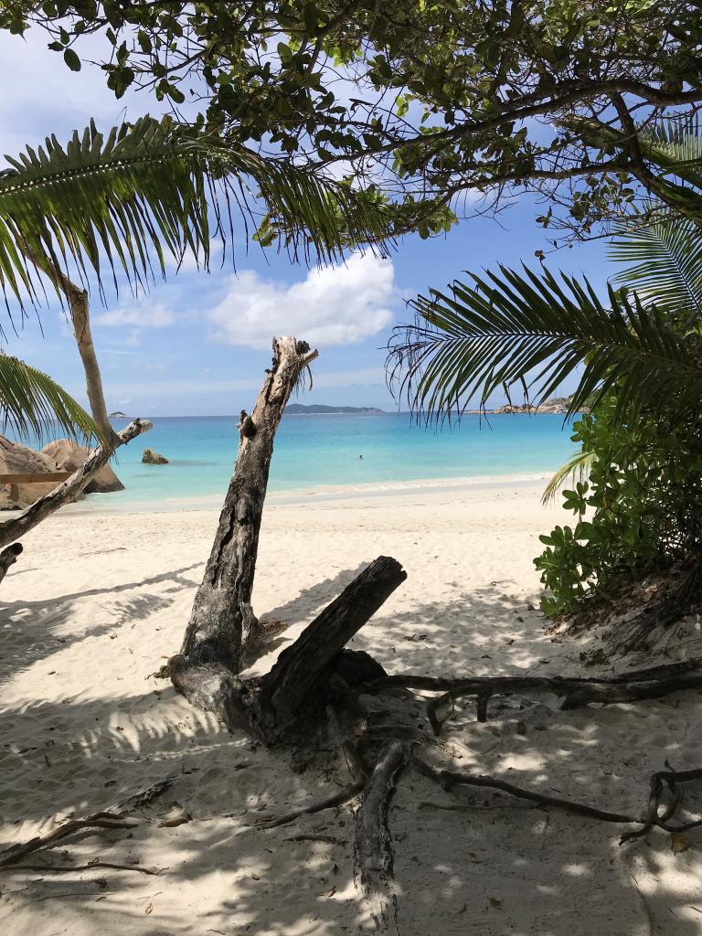 waren wir zunächst etwas enttäuscht, da wir bei Ebbe angekommen sind und das Wasser ziemlich weit hinten war. Wir haben schon vorher viel über den Strand und „seine Berühmtheit“ gelesen und haben daher so einiges erwartet. Als später dann das Wasser kam, sah es wirklich sehr schön mit den Felsen aus, aber uns haben andere Strände trotzdem besser gefallen.Mahé