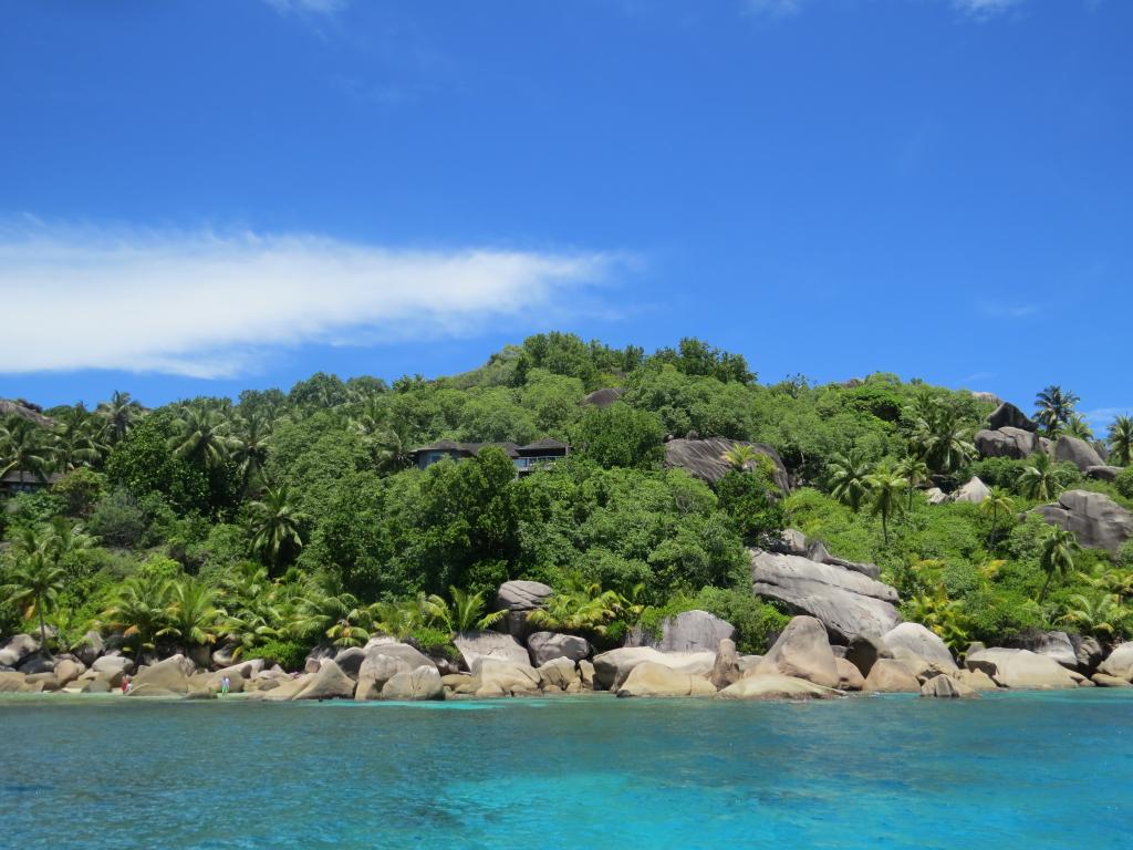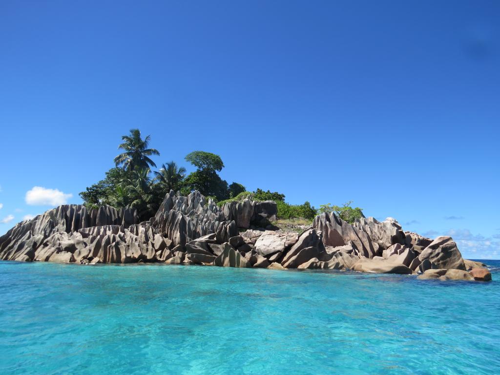 Mit der Fähre ging es am 31.03. dann weiter nach Praslín. In Praslín waren wir in der Le Tropique untergebracht. Auch diese Unterkunft ließ keine Wünsche offen: Unser Appartement war richtig toll. Ein großes Schlafzimmer, ein großes Bad und eine voll ausgestattete Küche. Draußen konnte man auf der eigenen Terrasse schön auf den Liegen entspannen. Einfach nur herrlich! Die Frau des Hauses Therese war immer hilfsbereit und sehr nett. Tolle Anlage direkt am Grand Anse. Auch hier hatten wir einen Mietwagen um uns die Insel anzuschauen. Wir gingen viel schnorcheln und machten erste Bekanntschaften mit Meeresschildkröten, Rochen und kleinen Riffhaien! Für uns eines der wohl schönsten Erlebnisse auf den Seychellen. Hier empfiehlt es sich wirklich eine Schnorcheltour zu buchen. Es werden verschieden Spots angefahren und dort hat man ausreichend Zeit zum Schnorcheln. Unser Guide gab uns während der Bootsfahrt auch viele Infos zu den umliegenden kleineren Inseln z.B. St. Pierre, Sister Island, Coco Island, Felicite Island …