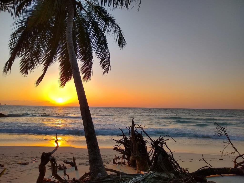 Praslin Schon die Anreise ist total spektakulär: Wir werden mit einer kleinen Propellermaschine von Mahé nach Praslin geflogen. Dort wohnen wir im charmanten Islander Hotel als Selbstversorger. Wir genießen die Ruhe und die Erholung, denn wir sind fast die einzigen Gäste hier, da das Restaurant über die Festtage geschlossen ist. Wir kochen uns selber Abendessen, was sich recht abenteuerlich gestaltet: Der sympathische Laden direkt an der Hotelanlage bietet vieles, aber natürlich nicht alle Produkte, welche wir gewohnt sind. So entstehen tolle, zusammengewürfelte Gerichte. Wir fahren mit dem Bus über die ganze Insel, erkunden die schönsten Strände und genießen immer wieder die fantastischen Sonnenuntergänge an “unserem” Strand Anse Kerlan, wo wir beim Schnorcheln bereits am ersten Tag auch einen Stachelrochen sehen. Der Strand ist für uns viel schöner als auf der anderen Inselseite – keine Steine, die den Einstieg erschweren, gute Sicht Unterwasser und auch kein Seegras. Natürlich steht auch ein Besuch im Vallée de Mai auf dem Programm, wo es die größten Samen der Welt, die Coco de mer zu bestaunen gibt. Wir machen auch einen Ausflug mit dem Katamaran, schnorcheln auf der unbewohnten Insel St. Pierre und Besuchen die Schildkröten im Curieuse Marine National Park auf der Insel Curieuse, welche früher als Lepra-Lazarett diente. Wir baden am berühmten Anse Georgette, wirklich ein toller Strand. Wir wandern auch mal selber zum Anse Lazio, was bei der Hitze zwar anstrengend ist, aber total lohnenswert!La Digue