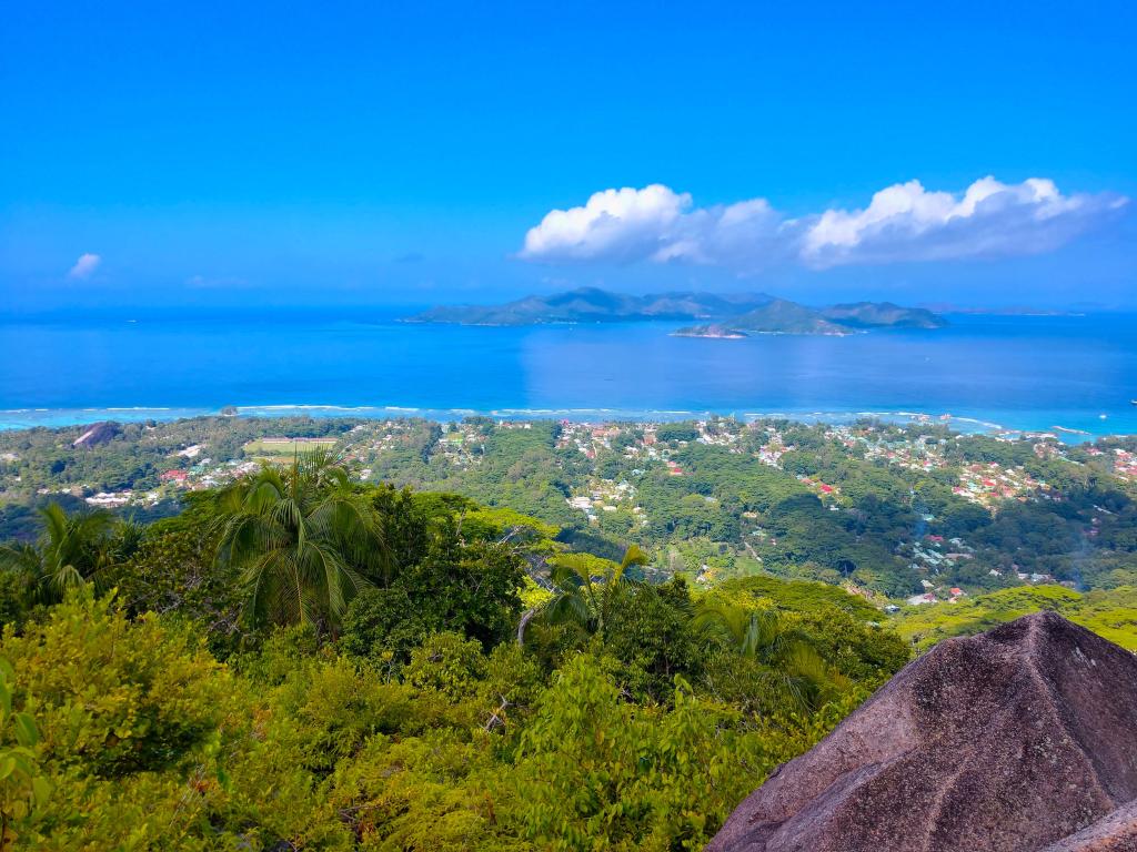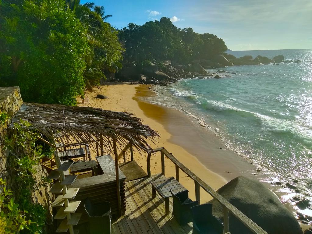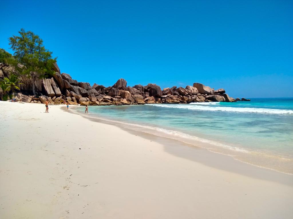 Wir wären noch länger auf Praslin geblieben, aber es ruft schon das nächste Abenteuer auf La Digue. Dort hausen wir bei Chez Marston, einem kleinen Hotel mit Restaurant an bester Lage in Hafennähe, wo das Leben spielt. Wir schätzen hier besonders, dass wir jeden Abend ein anderes Restaurant oder einen Take Away entdecken und tollen lokalen Spezialitäten wie Fisch und Meeresfrüchte genießen können. Natürlich mieten wir Fahrräder und das Anstrengendste ist der Aufstieg zum Nid d'Aigle, bei welchem wir trotz früher Stunde das tropische Klima zu spüren kriegen. Zum Glück gibt es in der Hälfte ein Restaurant, wo wir uns mit kühlen Getränken eindecken können. Die Aussicht auf das wunderbare Türkisblau ist atemberaubend. Wir besuchen den weltberühmten Strand Anse Source d'Argent, welcher wirklich schön ist, aber für uns nicht so schön wie der Grand Anse. Hier hat es ziemlich hohe Wellen, was uns aber nicht stört.Mahé