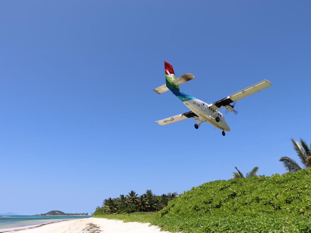 Wir flogen dann mit einer kleinen Propellermaschine in ca. 20 Minuten direkt nach Praslin, hier durften nicht alle Koffer mit an Bord, da die Maschine sonst zu schwer gewesen wäre.