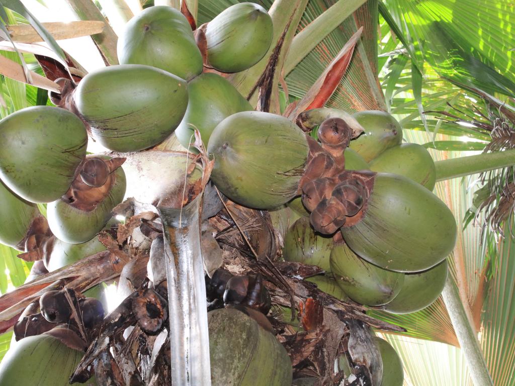 Wir hatten uns bereits im Vorfeld bei Seyvillas einen Mietwagen gebucht und dieser wurde auch pünktlichst am ersten Tag an uns übergeben, so machten wir uns auch gleich auf das Vallée de Mai zu besuchen. Wir wählten eine Tour mit einen deutschsprachigem Guide und los ging es durch diesen Wald mit dem dichten Blätterdach der Kokuspalmen, bis wir dann auch schon die ersten riesigen Kokusnüsse der Coco de Mer sahen, wir konnten die Exemplare auch selbst einmal hochheben und alles genau betrachten. Immer wieder machte uns der Guide auf Vögel oder kleine Echsen aufmerksam und zeigte uns die verschiedensten Palmenarten, die nur hier auf Praslin wachsen.