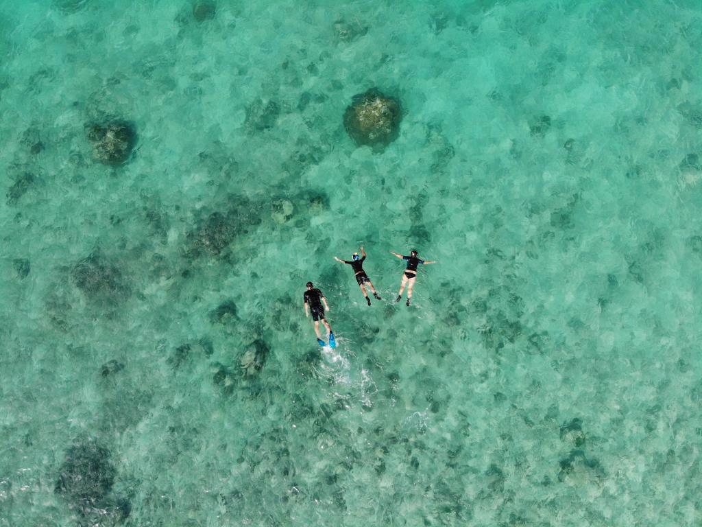 Am Heiligen Abend haben wir vom Hafen von La Digue aus einen Schnorchelausflug nach Petite Soeur, Grande Soeur, Coco Island und Felicite gemacht. Dort haben wir am Strand im flachen Wasser direkt die Fische, unter anderem auch Haie bewundern können. Grande Soeur