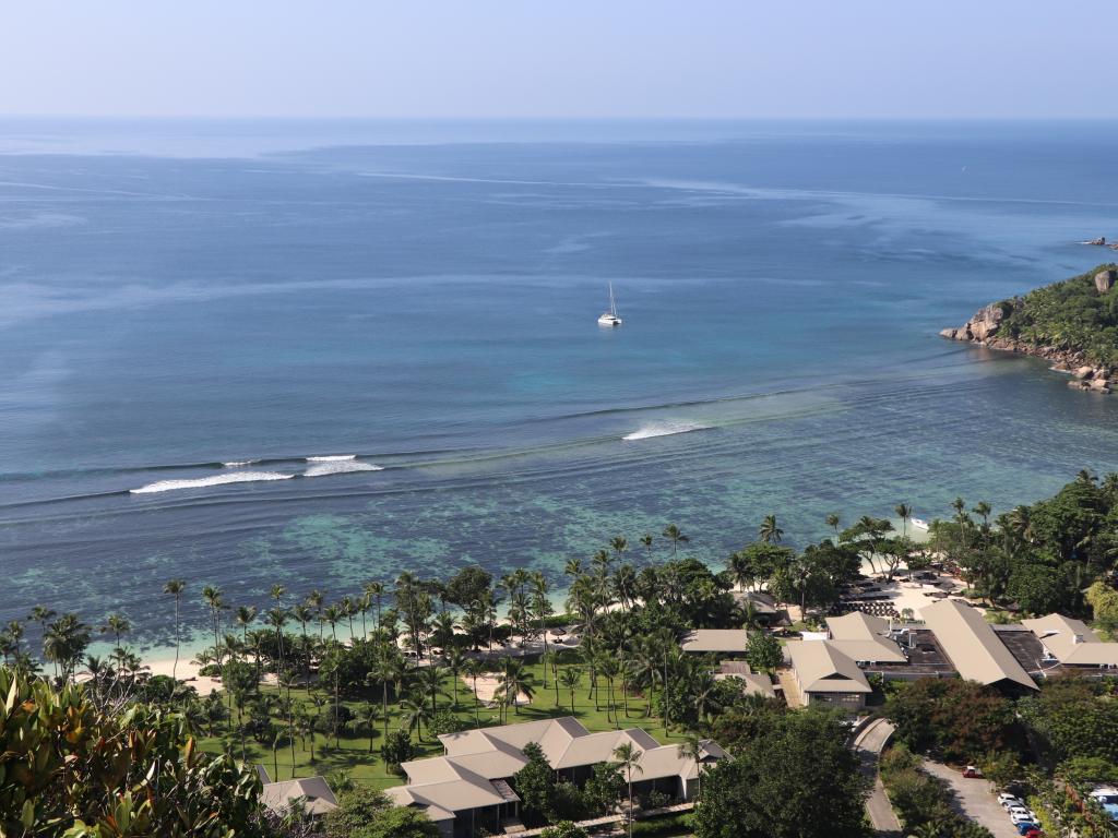 Wir liehen uns SUPs, schnorchelten und entspannten so richtig. Wenn nicht gerade Ebbe war, war der Wasserstand angenehm tief, sodass man auch schwimmen konnte. Kempinski Resort Seychelles- Ausblick vom Mount Kempinski