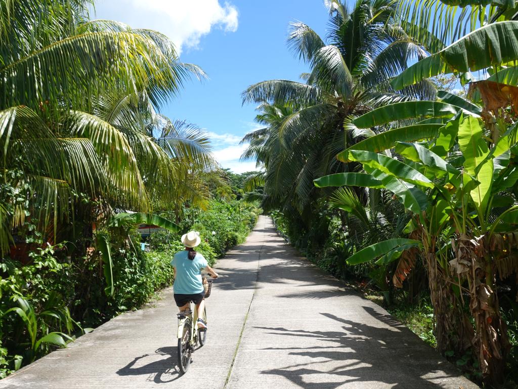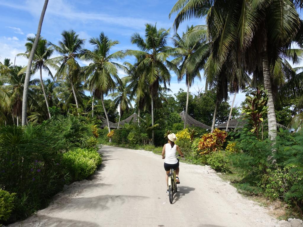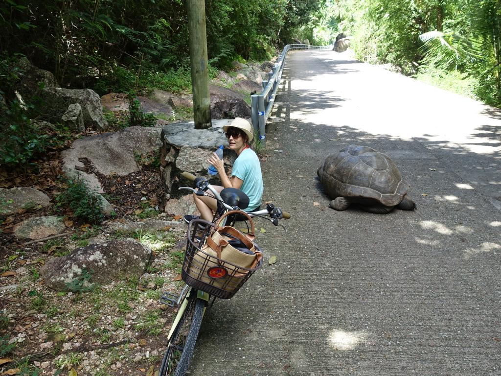 Am nächsten Morgen ging es los, die Insel erkunden. „Schönster Radweg der Welt“ hatten wir im Reiseführer gelesen und man hat definitiv nicht übertrieben. Zunächst ging es Richtung Norden, vorbei an wundervollen Stränden wie Anse Severe oder Anse Patates, vorbei an kleinen Strandbars durch wundervolle tropische Vegetation. Vor lauter Staunen musste man aufpassen, nicht die frei laufenden Schildkröten zu überfahren: