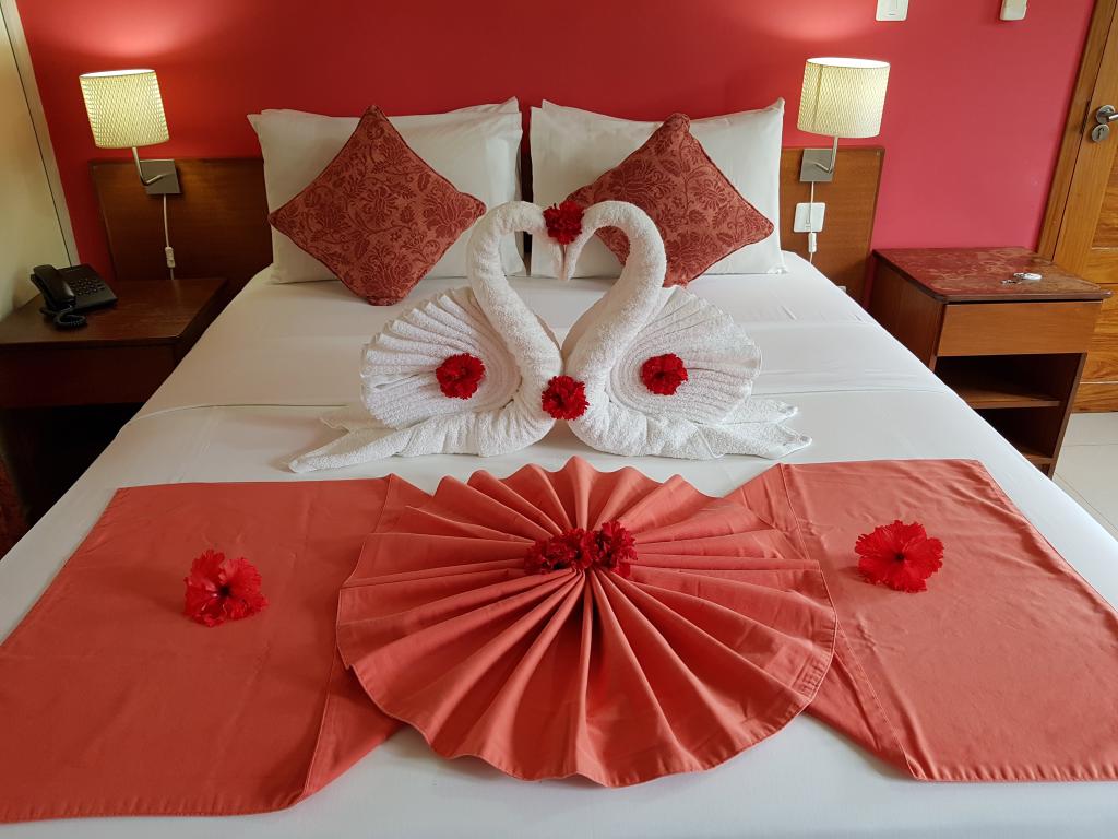Per Fähre ging es am 6.Tag nach Praslin. Auch hier verlief der Empfang und Transfer durch Creole wieder reibungslos. In unserer Unterkunft Cote D'Or Chalets waren wir fast allein, überhaupt waren recht wenig Touristen auf den Inseln. Ein großes modernes Zimmer im 1. Stock, jeden Tag wurde das Zimmer gereinigt und mit Blumen dekoriert. Nicht schlecht für eine Selbstversorgerunterkunft.