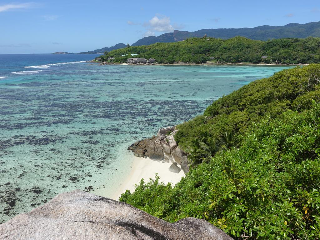 Am letzten Tag auf La Digue unternahmen wir eine Wanderung zum Snack Bellevue. Der schweißtreibende Aufstieg (wir haben die Räder geschoben) wurde mit einem tollen Ausblick belohnt: