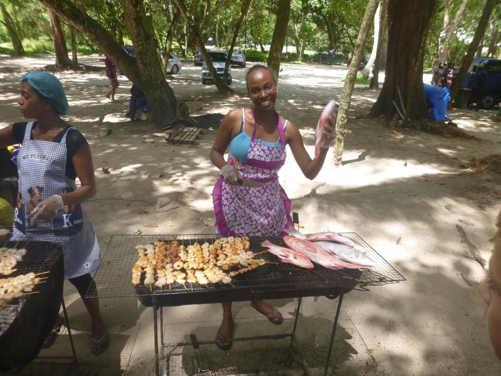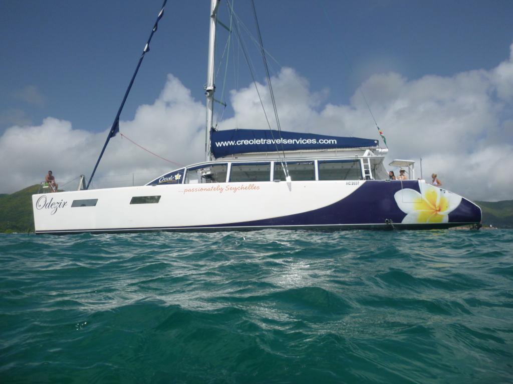 Am Strand stehen viele kleine Stände mit leckere Kokosnüssen zum trinken und essen. An einem Tag haben wir einen schönen Ausflug mit Creole gebucht. Eine Tour mit einem riesigen Katamaran. Katamaran
