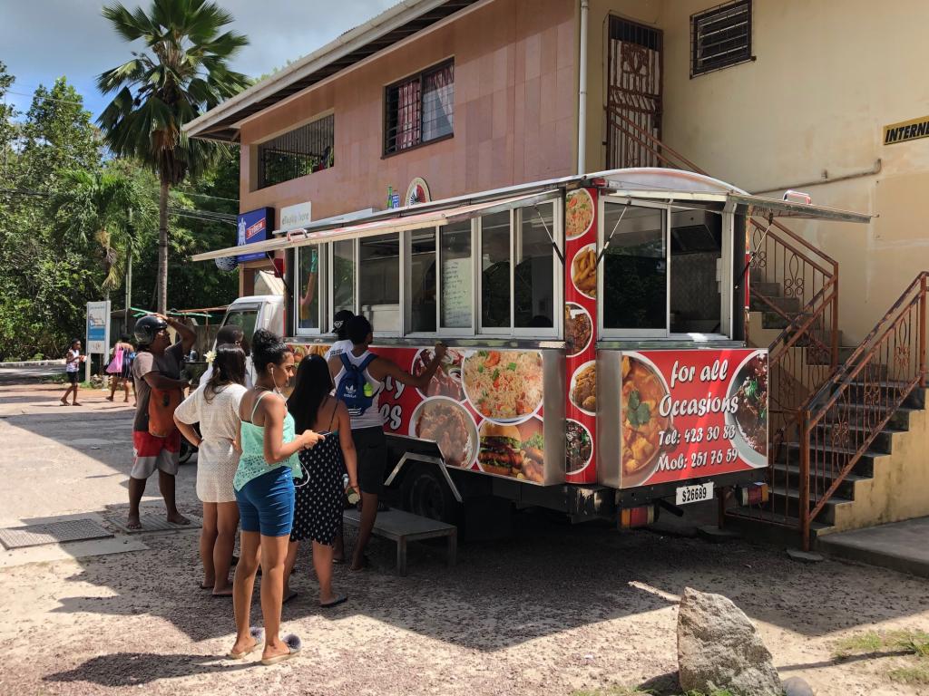 Der Park ist ein einziger Dschungel mit vielen Palmen und der riesigen Kokosnuss Coco de Mer. Es gibt überall auf der Insel Take Away Läden bei denen das Essen immer sehr lecker geschmeckt hat. Takeaway