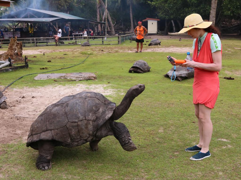 Dort trafen wir auf die wundervollen und beeindruckenden Seychellen-Riesenschildkröten und machten eine Wanderung zur Anse Badamier (unglaublich schöne, wilde und einsame Bucht). Dann ging es durch den Mangrovenwald zu einem weiteren Strand, von dem wir nach 3-stündigem Aufenthalt wieder abgeholt wurden. Unser 7. Hochzeitstag war perfekt! Anse Volbert, PraslinSchildkröte, Curieuse