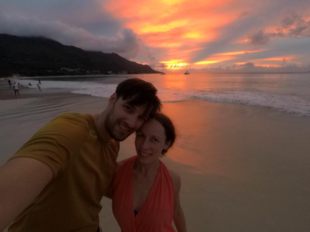 An unserem letzten Tag war der Himmel bedeckt und wir entschieden uns für eine weitere Wanderung, diesmal an der Nordküste entlang zur Anse Major. Sie führte uns zu der süßen Bucht, in der wir uns entspannten, badeten und schnorchelten. Der Sand dort war etwas gröber als an anderen Stränden, wodurch die Sicht unter Wasser ausgezeichnet war und wir viele bunte Fische sahen. Den Tag ließen wir am bekannten Beau Vallon ausklingen. Dort wurden wir zum Abschluss unserer Reise mit einem atemberaubenden Sonnenuntergang beschenkt.Beau Vallon, Mahé