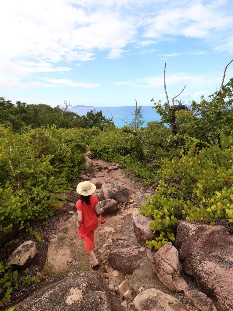 Nach monatelanger Vorfreude war es endlich soweit. Auf Mahé gelandet, ging es mit einer kleinen Propeller-Maschine weiter auf die Insel Praslin-ein Abenteuer für sich. Wir sind nicht so die Camper, aber auch keine All-inclusive-Fans. Daher war unsere Unterkunft, das The Old School Self Catering in der „Baie St. Anne“, perfekt für uns! Praslin bereisten wir hauptsächlich mit dem Bus, mit umgerechnet 50 Cent pro Person und Fahrt ein Schnäppchen. Zudem bekamen wir ein authentisches Bild vom Inselleben. Als ersten Strand auf den Seychellen besuchten wir die Anse Volbert (Cote d'Or). Sie raubte uns den Atem. Wir erkundigten uns bei Sagittarius Taxi Boat Excursions über Ausflugsmöglichkeiten und buchten für den Folgetag eine Tour zur Insel Curieuse für 45 Euro pro Person.Wanderung Curieuse